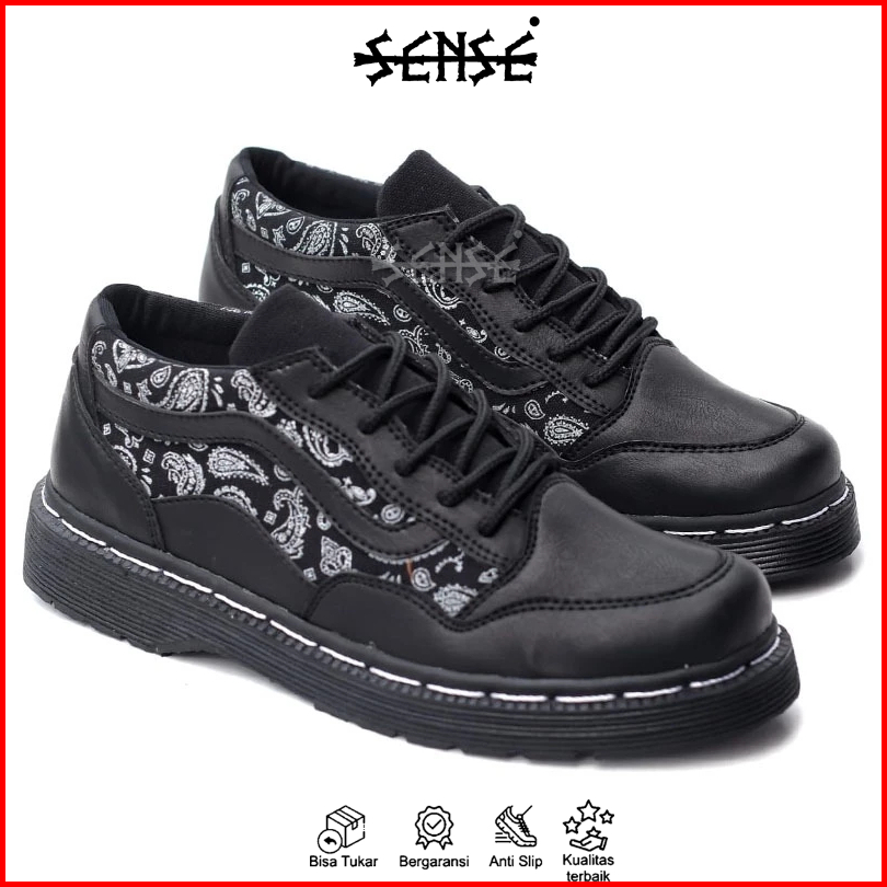 Sense - Sepatu Pantofel Formal Docmart Pria Hitam Paisley