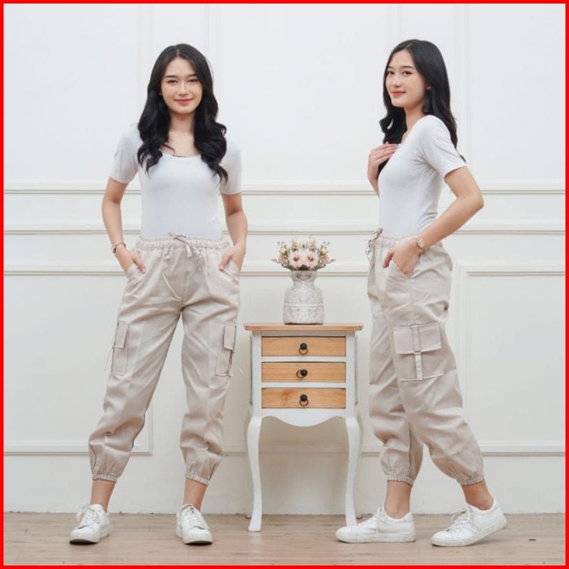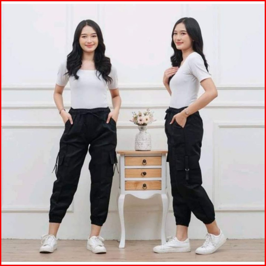 Celana Hypebeast Cargo Jogger Panjang Wanita Big Size Jumbo Muat Bb 40 - 80 Kg