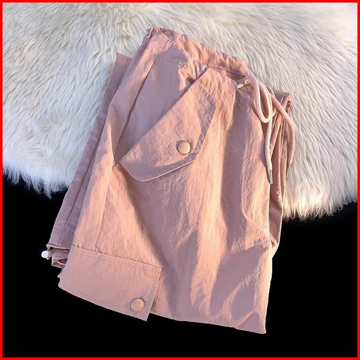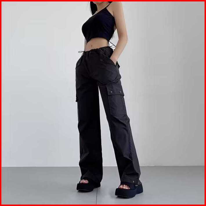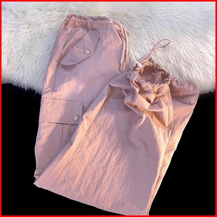Celana Kargo Serut - Highwaist Loose Cargo - Celana Kargo Wanita - Celana Pink