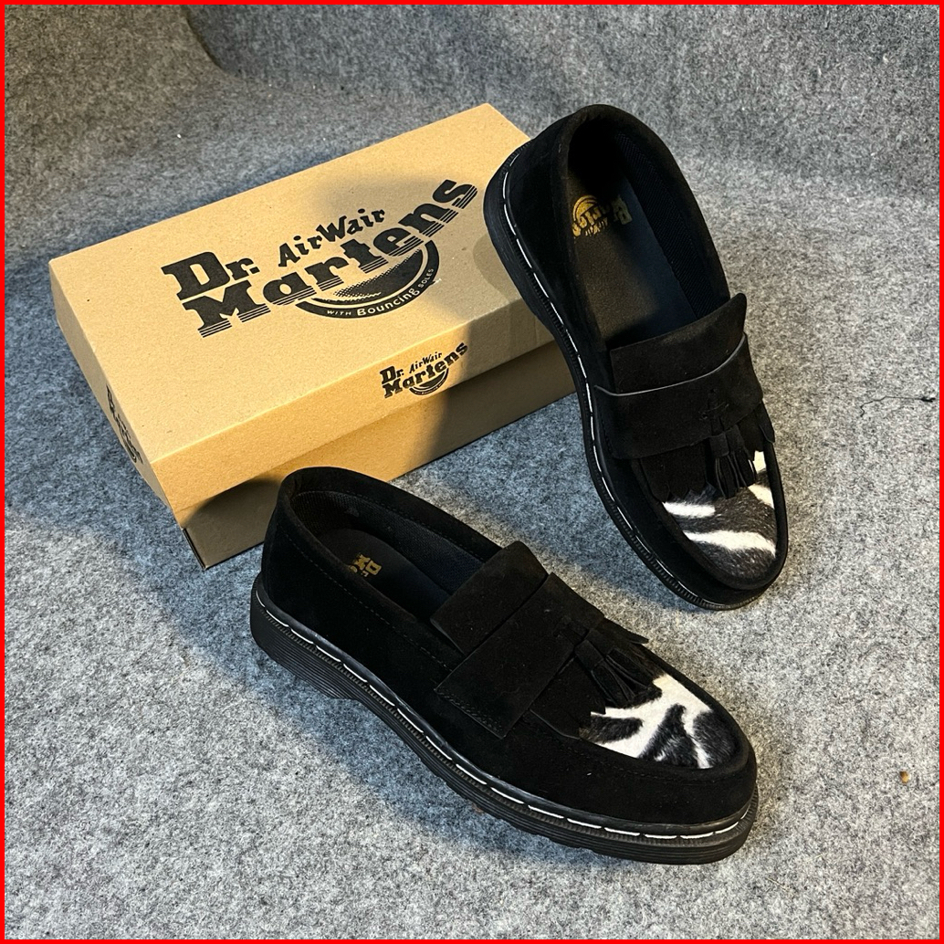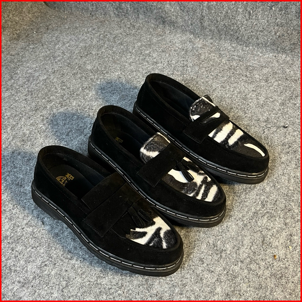 Sepatu Docmart Formal Penny Loafers Pria Hitam Motif Zebra