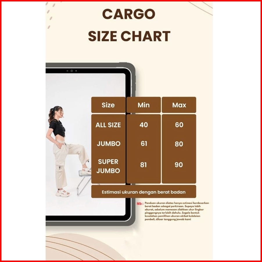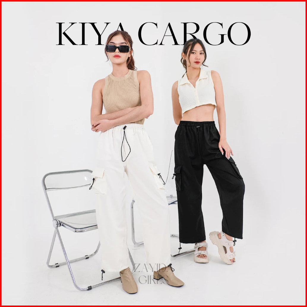 Hamzyu - Kiya Cargo Pants Wanita Highwaist Loose Korean Style Jumbo - Celana Kargo Wanita Terbaru