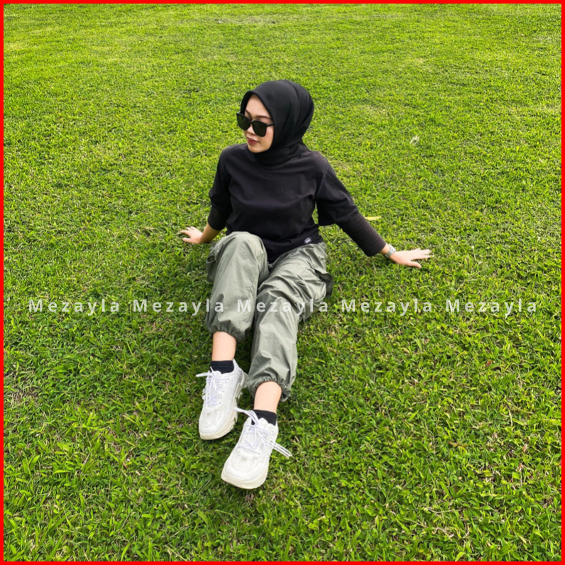 Mezayla Celana Cargo Wanita Highwaist Loose Premium
