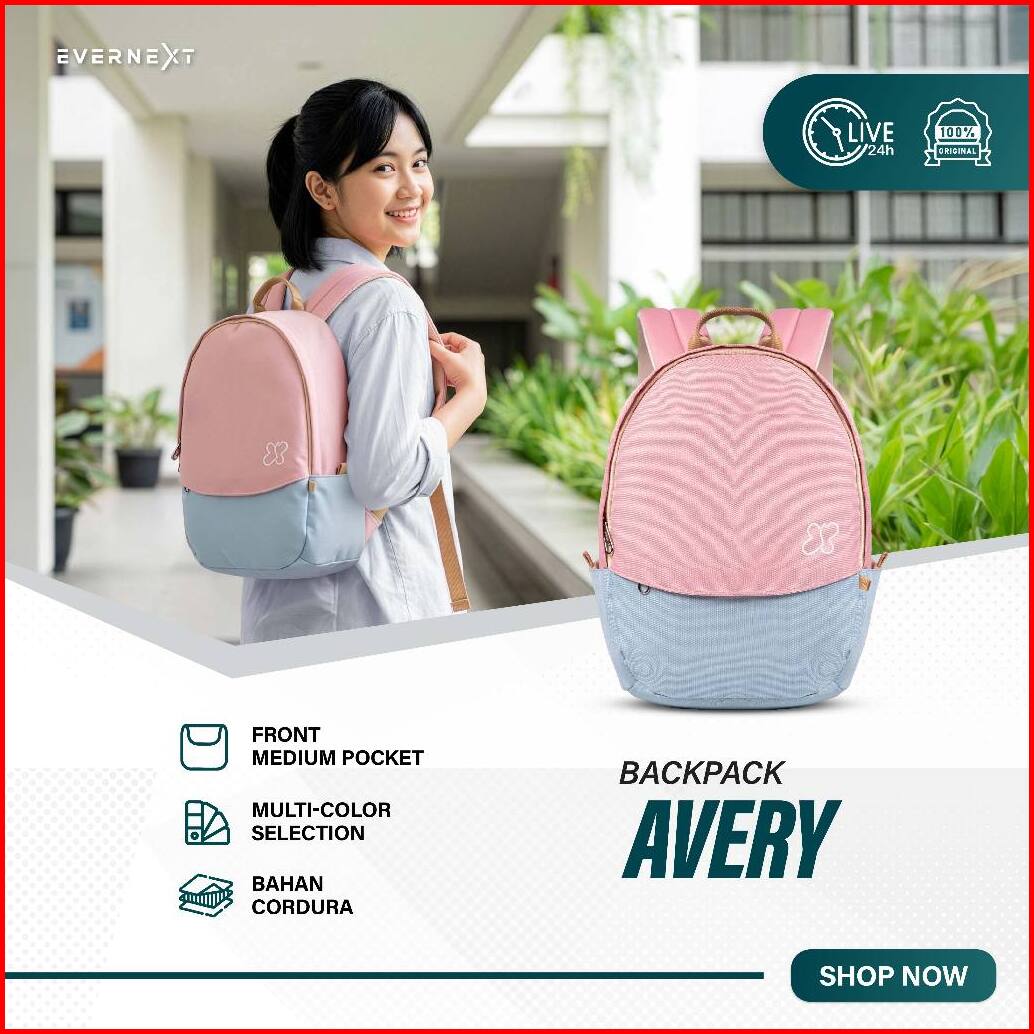 Evernext - Tas Ransel Wanita Tas Sekolah Tas Kuliah Cewek Backpack Avery Tas Punggung Laptop Wanita