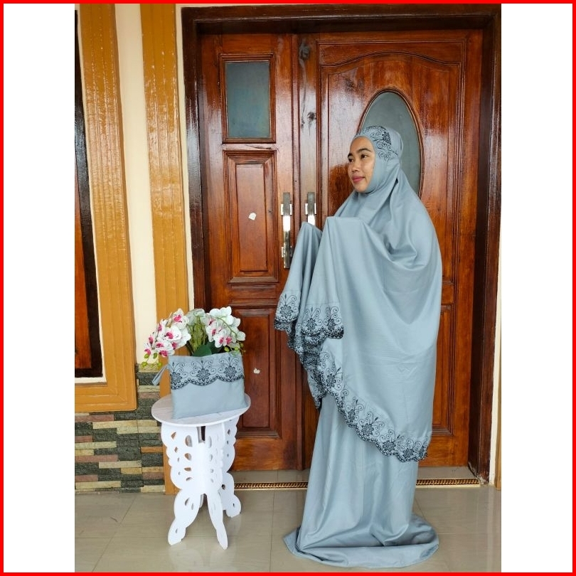 Hasnashop - Mukena Dewasa Khadijah Bordir Gracella Mukena Khadijah Jumbo Terbaru 2025