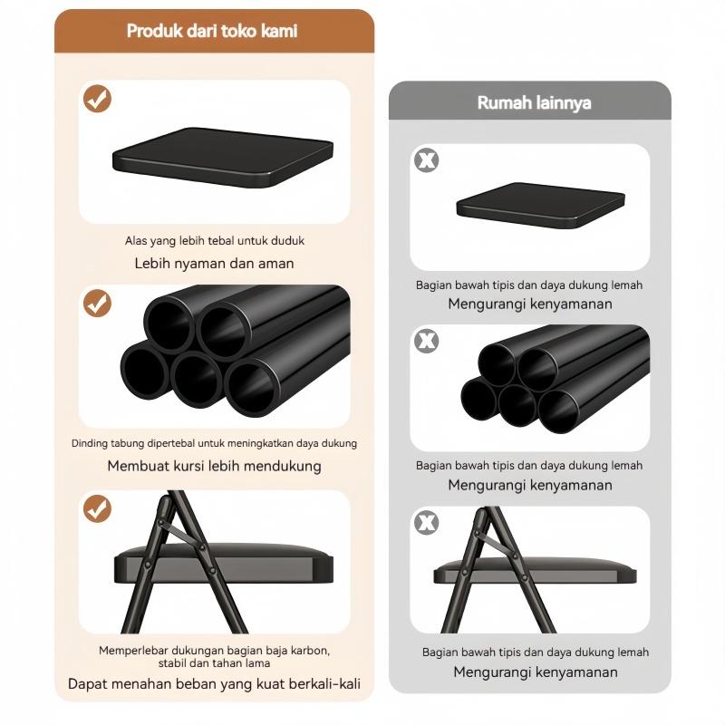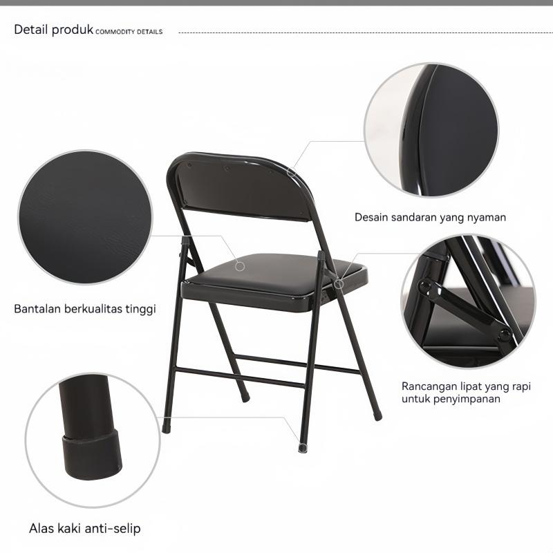 MRASIA Kursi Lipat Minimalis Highline KL-317 untuk Makan Cafe dan Acara Bahan Besi Dudukan Kulit Sintesis Hemat Tempat