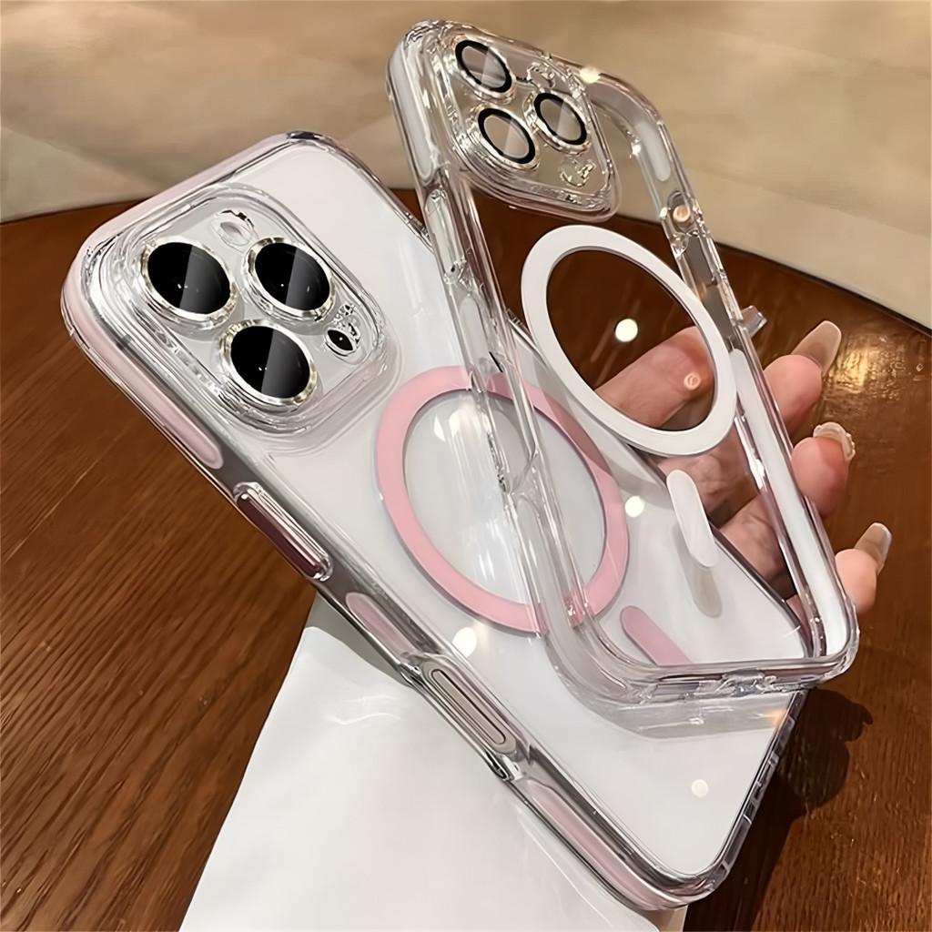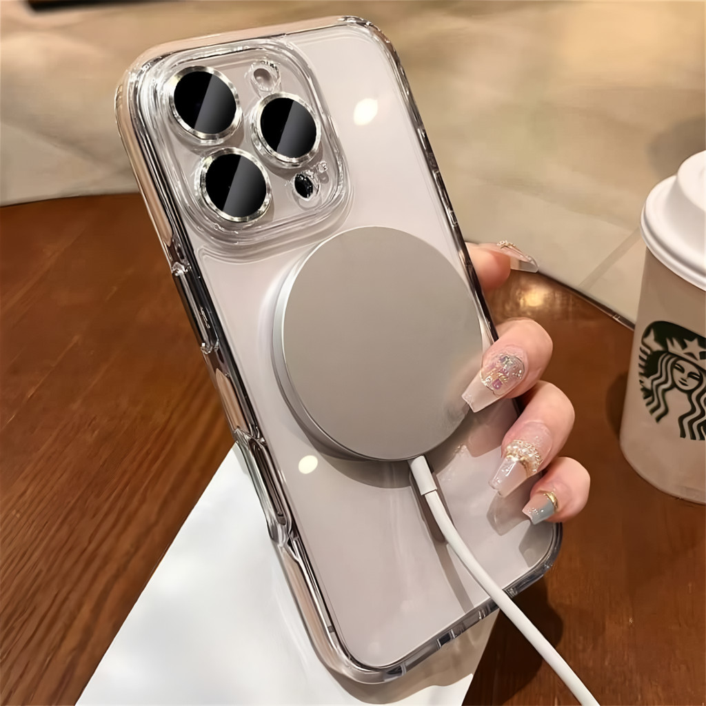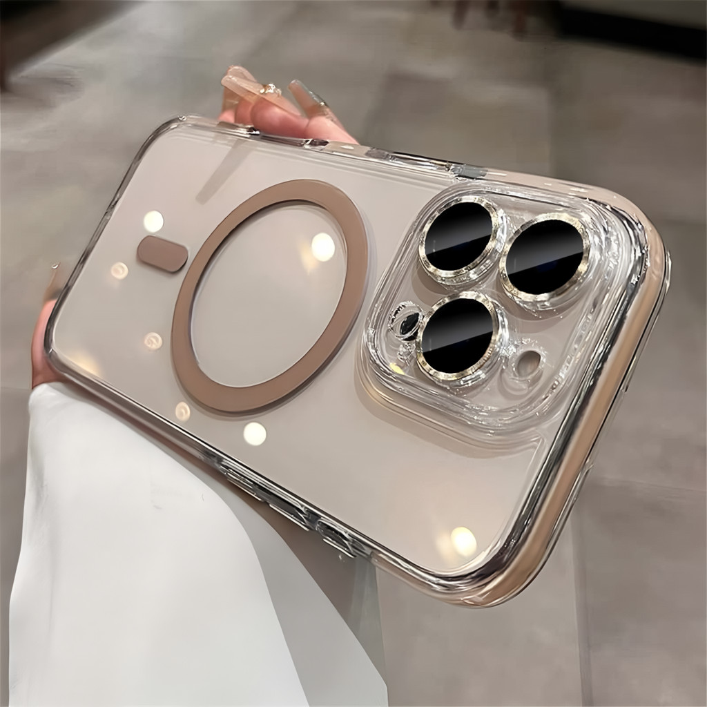 [Star] Desert Titanium Crystal Clear Magnetic Case iPhone 13–17 Pro/Pro Max – Slim PC Hardcase dengan Camera Protection