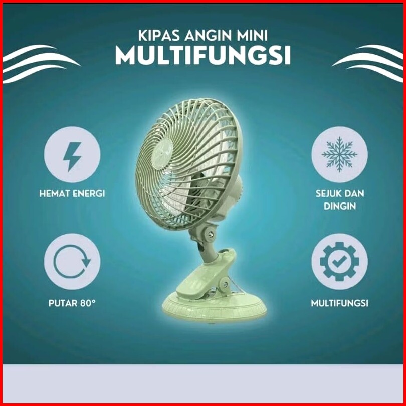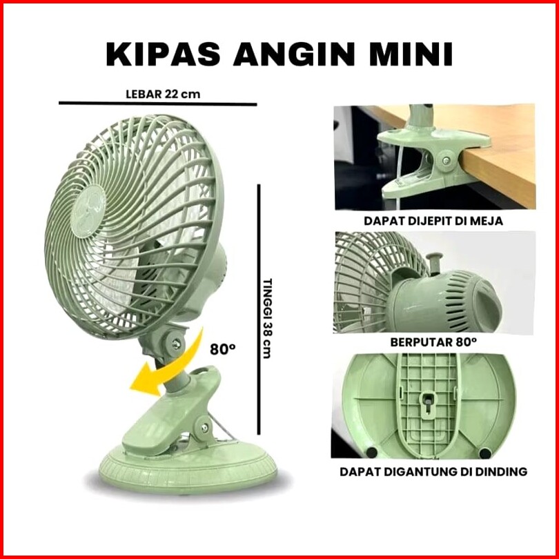 Kipas Angin Clip Fan Javotec Fc01-480 Multi Fungsi Jepit Meja Duduk Dinding Ukuran 8 Inch - 3 In 1 Function