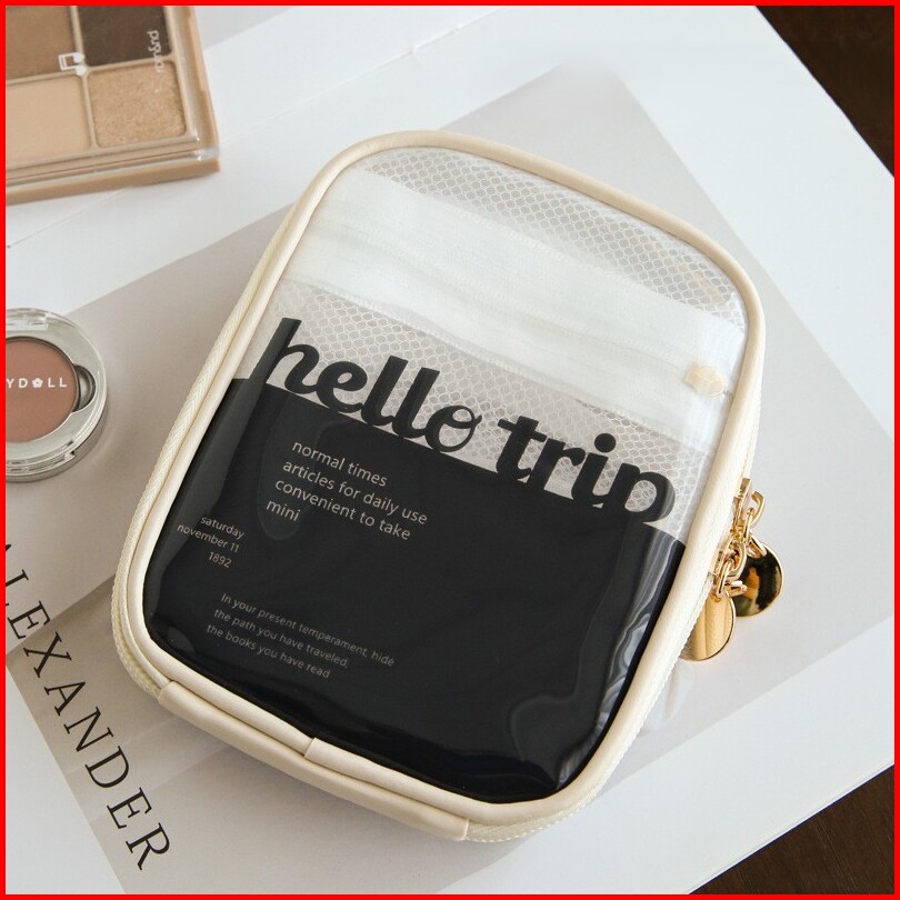 Haru Hello Trip Series Travel Makeup Pouch Tempat Penyimpanan Kapasitas Besar Korea Aesthetic Cosmetic