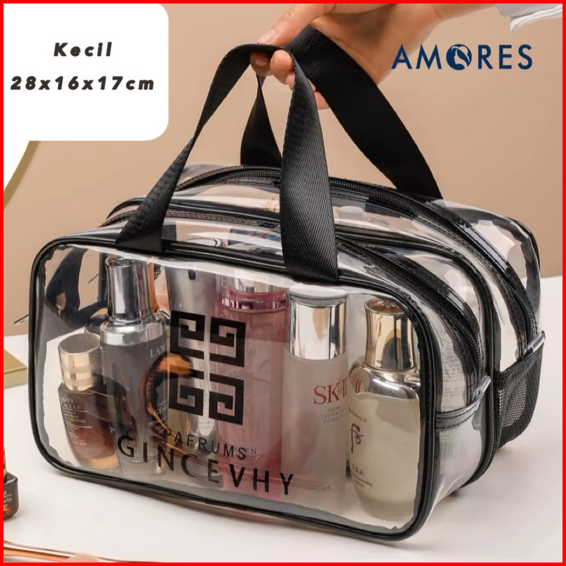 Tas Kosmetik Portable Travel Transparan Pouch Make Up Pouch Bahan Plastik Wash Bag Kapasitas Besar Tm 106