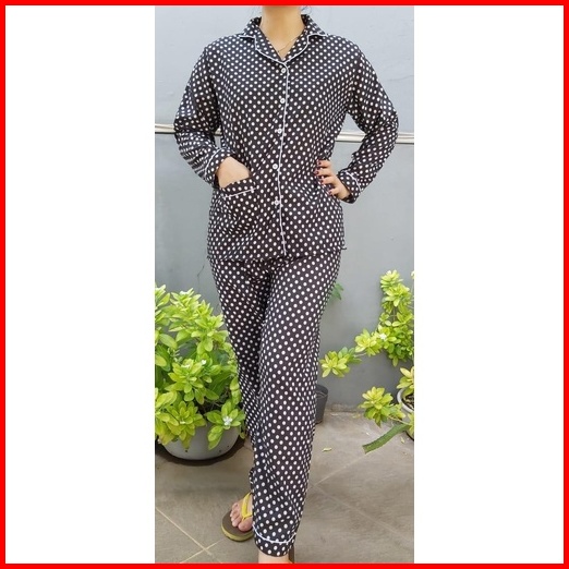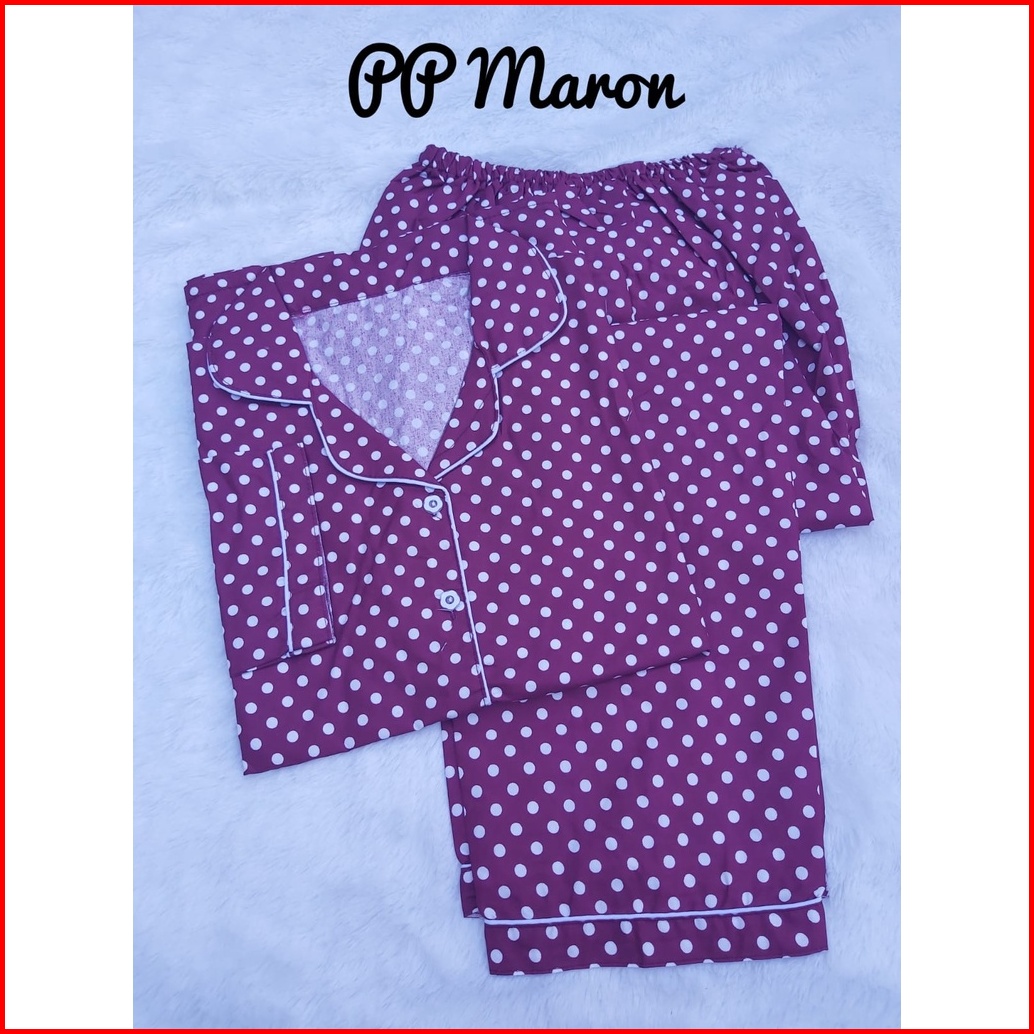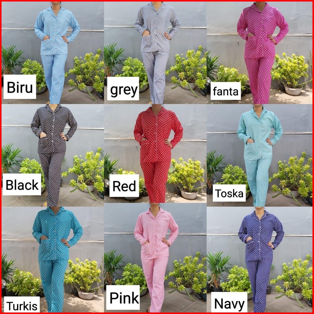 Jnv Piyama Pp Wanita Motif Polkadot - Baju Tidur Lengan Panjang - Bahan Katun