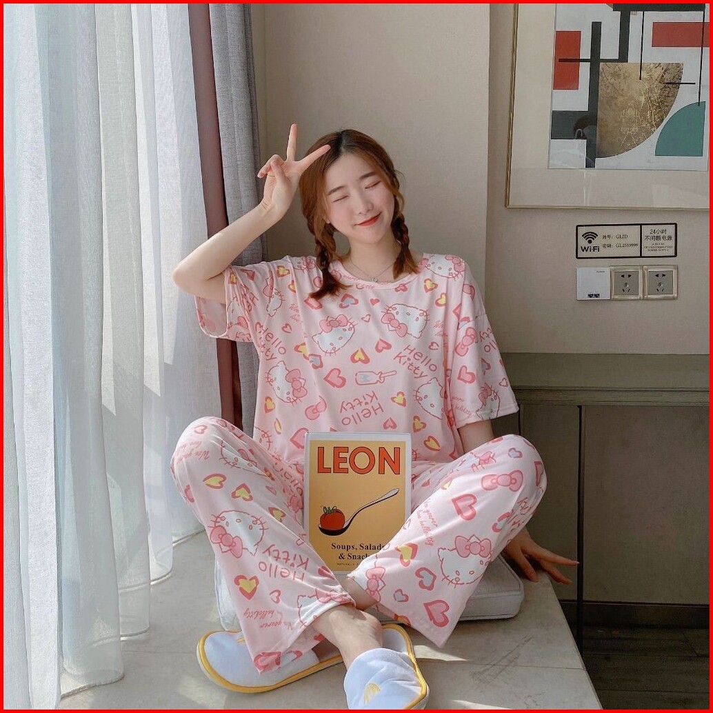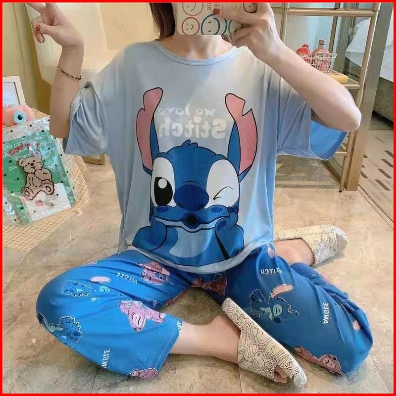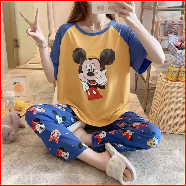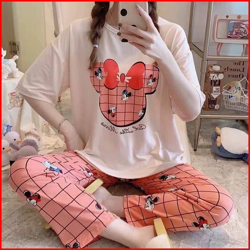 Codbaju Tidur Wanita Piyama Korea Lengan Pendek Celana Panjang Motif Kartun Lucu Setelan Tidur Murah Model Kaos Korea
