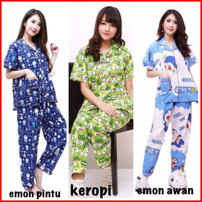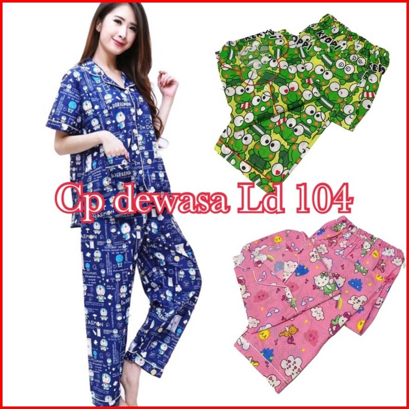 Piyama Dewasa Cp Lengan Pendek Celana Panjang Katun Jepang Set Baju Tidur