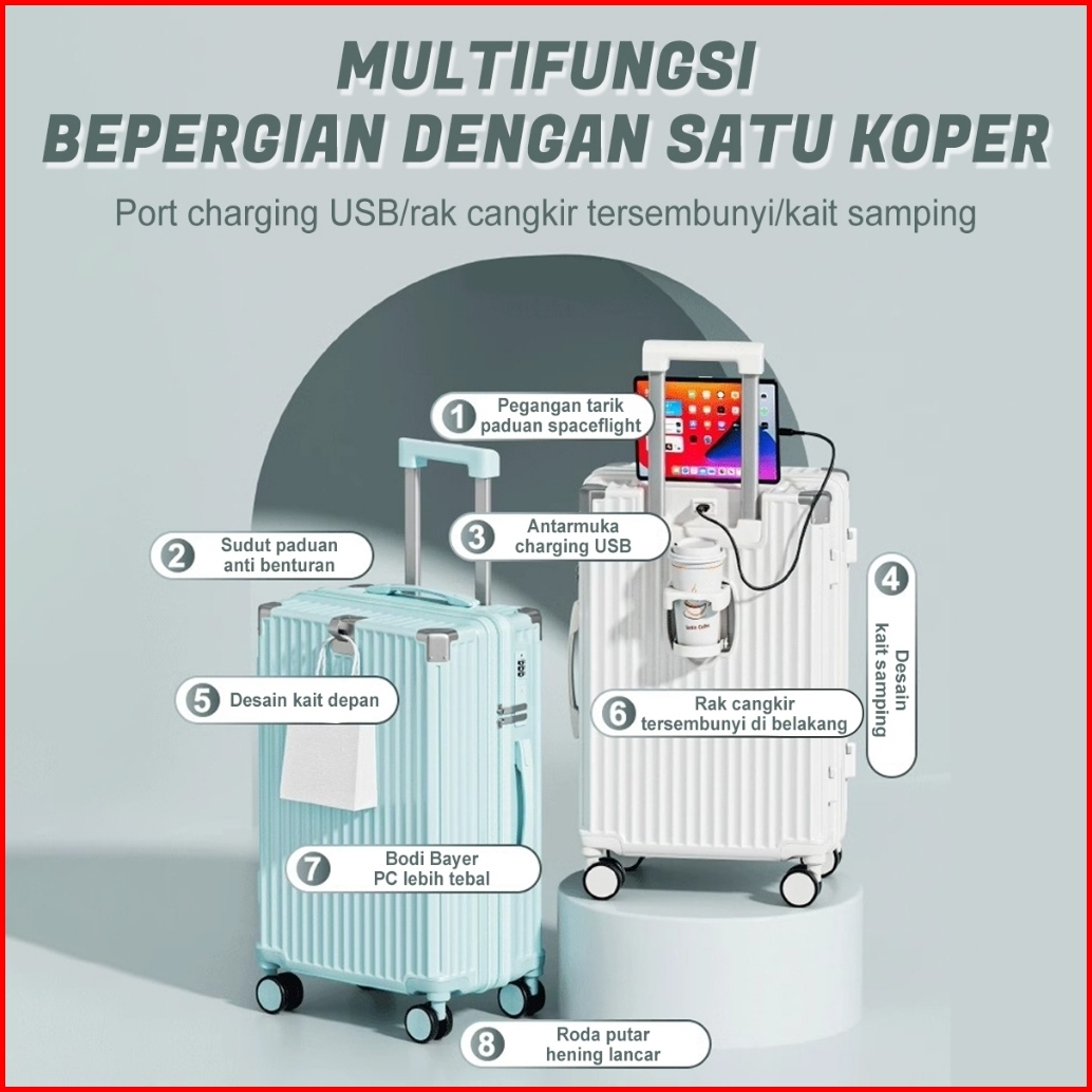 Kapasitas Besar Koper 24 Inch 20 Inch Travel Kabin Bagasi Laptop New Design Stand Cup Charger Koper 2 In 1mini 14 Inch