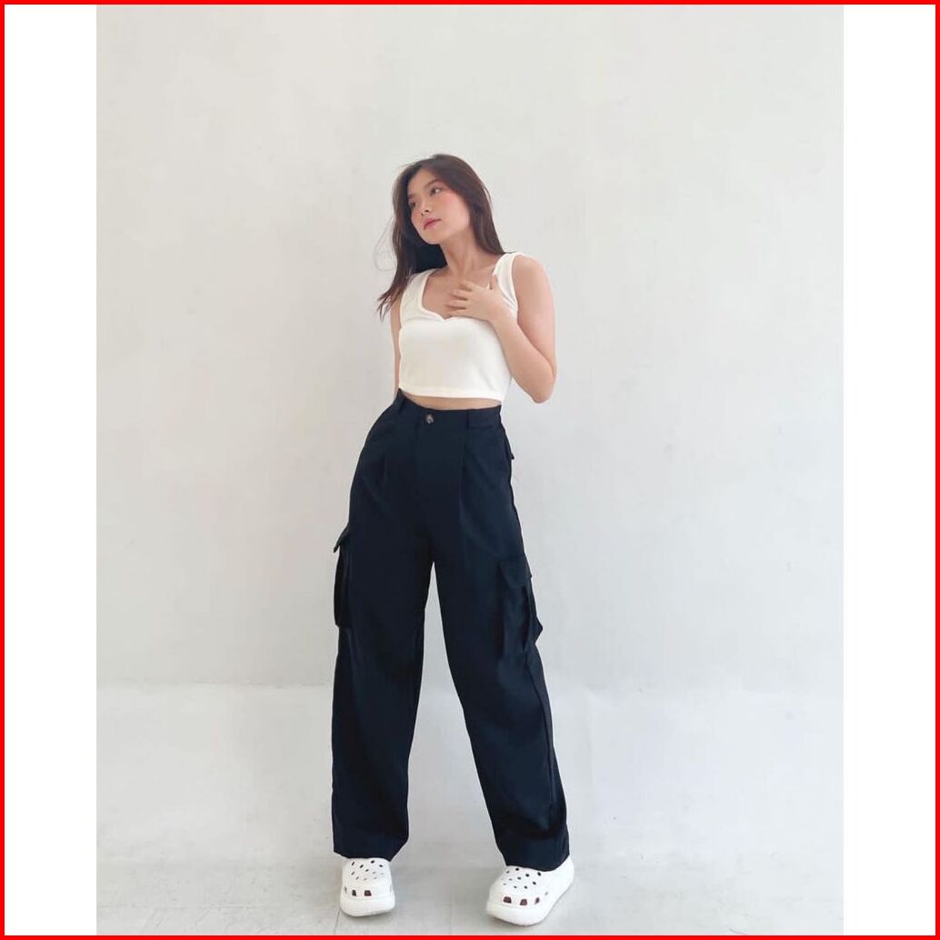 Celana Cargo Panjang Wanita Highwaist Premium Jumbo Cargo Pants Wanita Bahan American Drill Size M L Xl Xxl