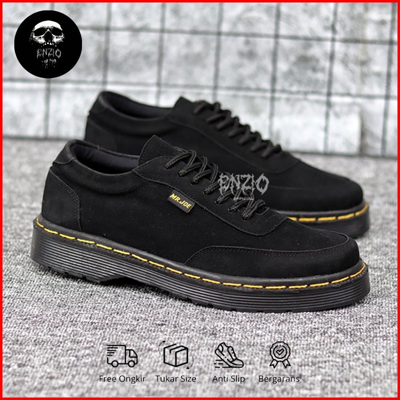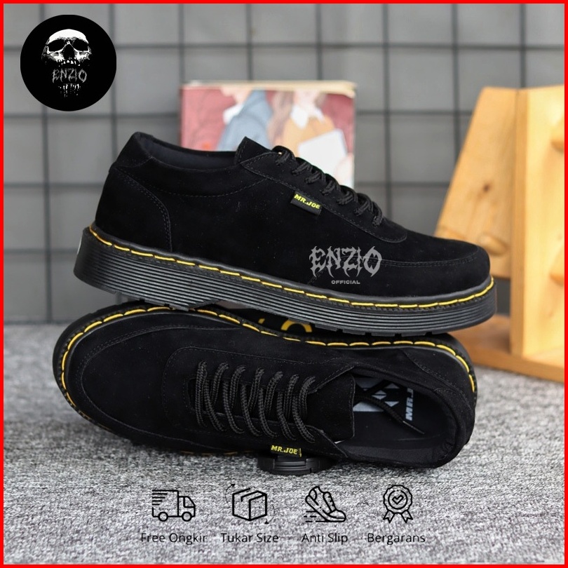 Enzio - Sepatu Oxford Pria Docmart Formal Casual Suede Kerja Pria Hitam