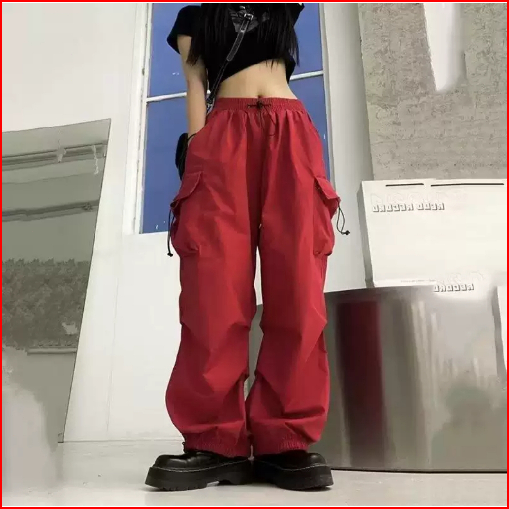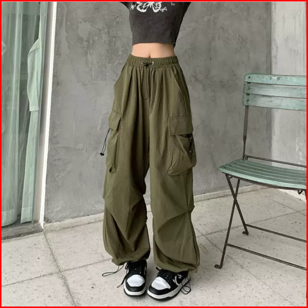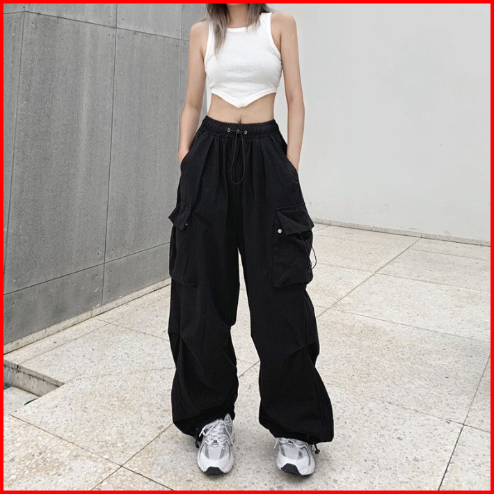 S-5xl Celana Kargo Kasual Highwaist Loose Celana Lebar Kaki Lurus Celana Cargo Wanita Celana Longgar