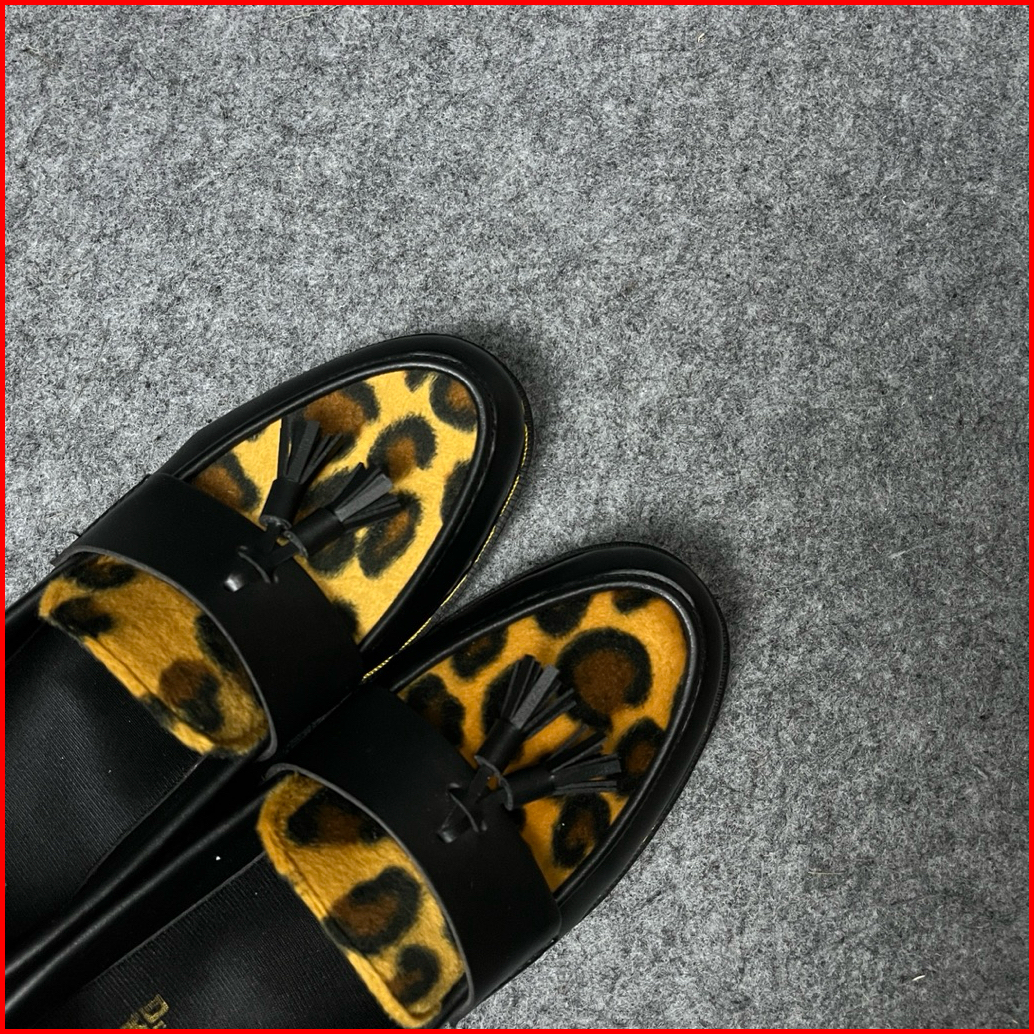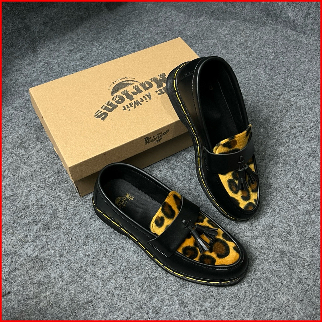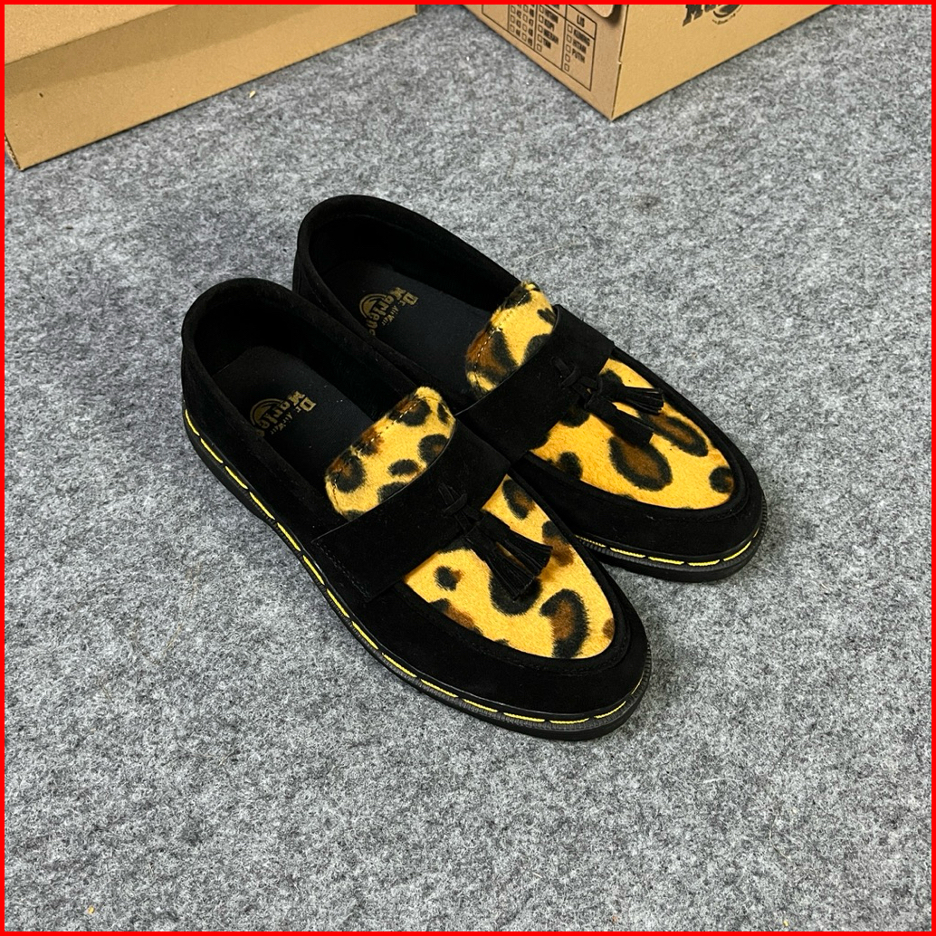 Sepatu Docmart Penny Loafers Pria Hitam Motif Leopard