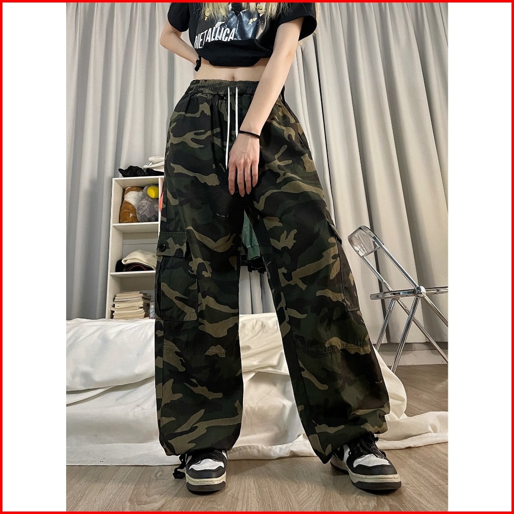 Stok Siapcelana Cargo Korean Style Cargo Camo Loose Cargo Pants Outdoor Original Cargo Jeans Celana Banyak Kantong Wanit