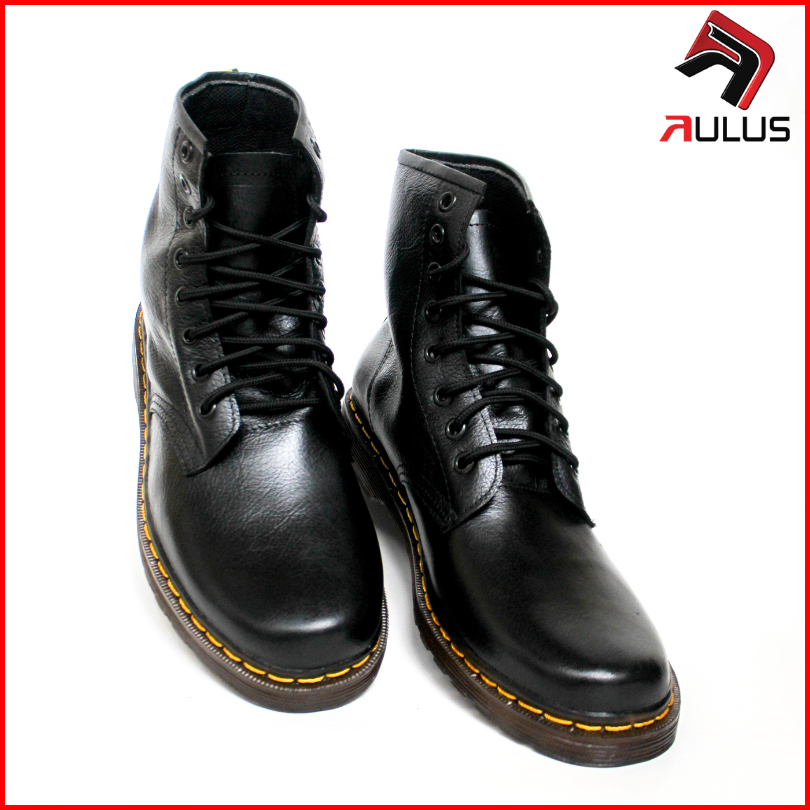 Aulus Sepatu Boots Casual High Pria 8 Hole Kulit Sapi Asli
