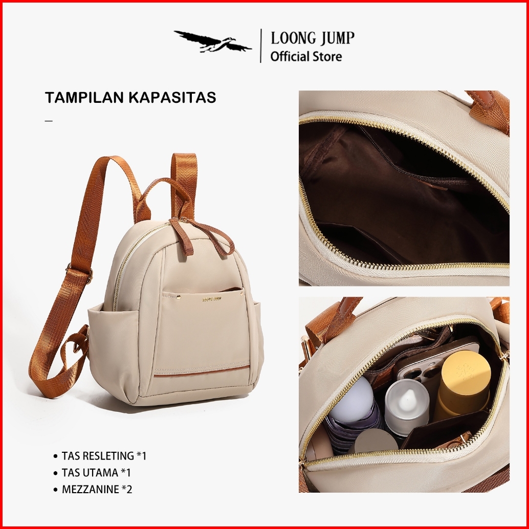 Loong Jump Tas Ransel Wanita Mini Tas Sekolah Anti Air Tas Ransel Multifungsi Tas Ransel