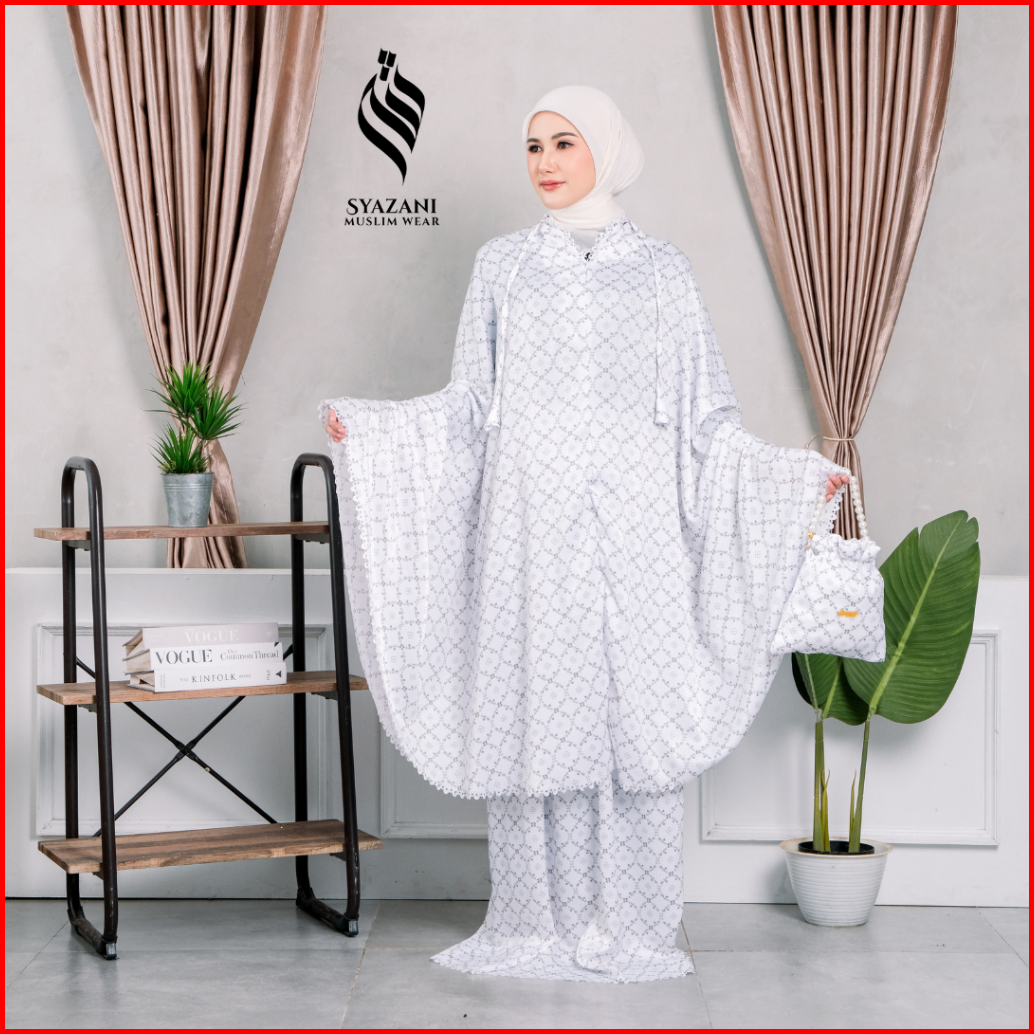 Syazani - Mukena Dewasa Santorini Silk 2in1 Lasercut Mahyra Series