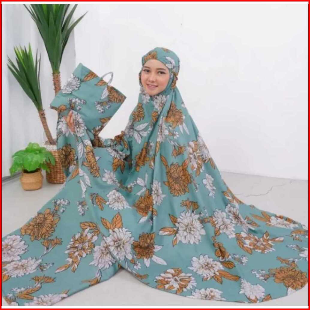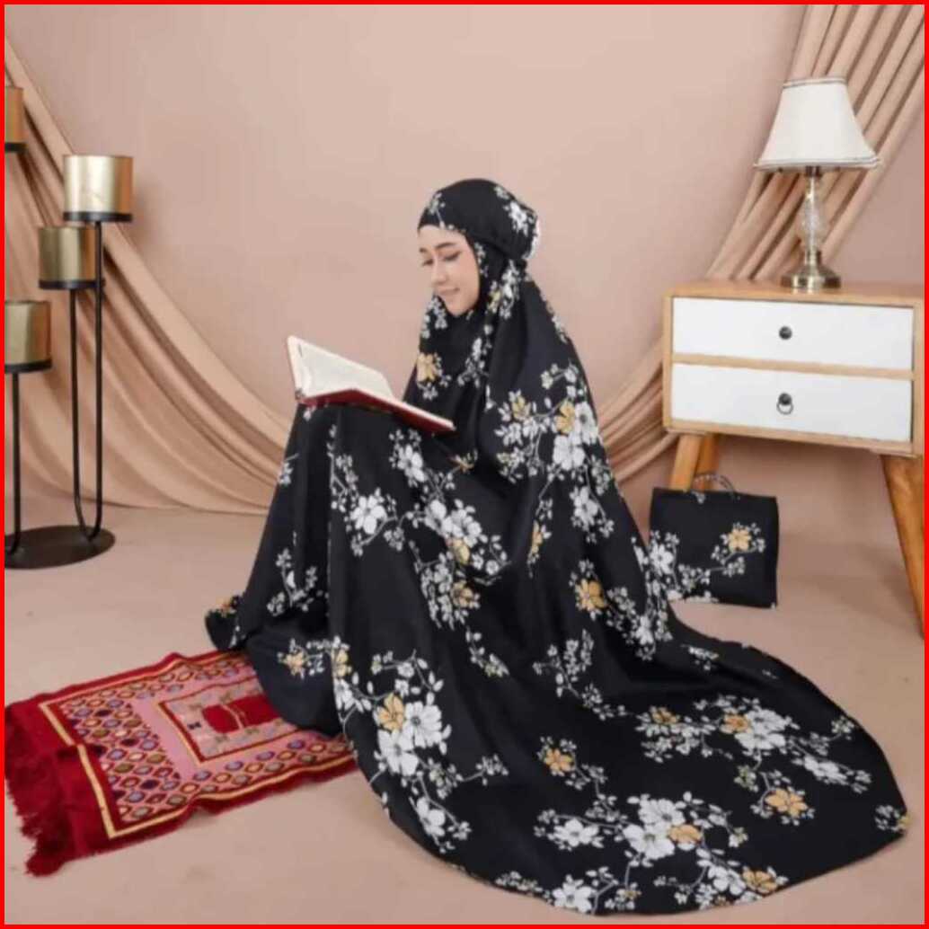 Mukena Dewasa Motif Bunga Sakura Jumbo Hingga Bb40-85kg Mukena Traveling Mini Pouch