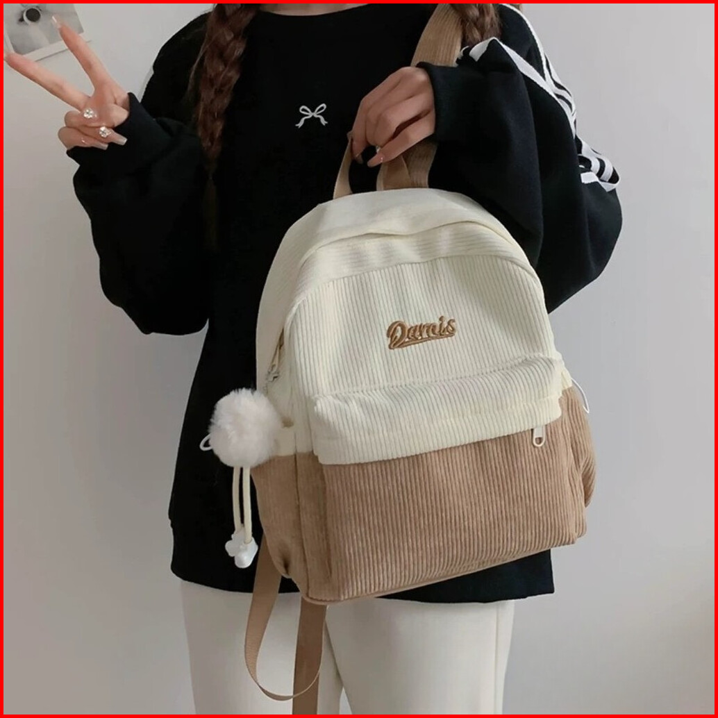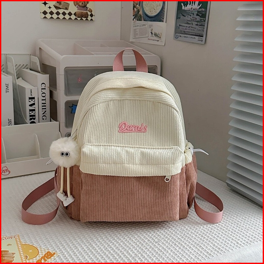 Tas Ransel Corduroy Import Multifungsi Korea Style Backpack Sekolah Kerja Terbaru