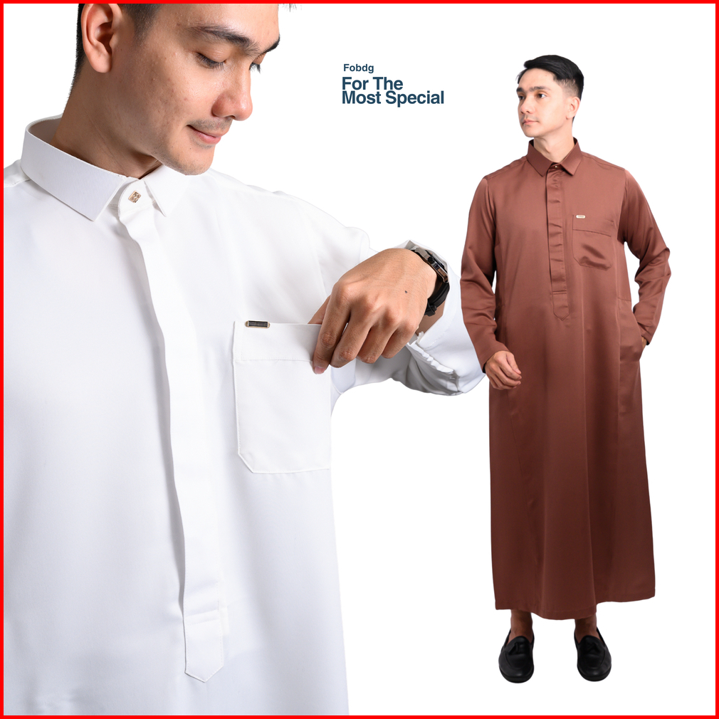 Fobdg Gamis Thobe Bungur Jubah Muslim Pria Bahan Arabian Vins Lengan Panjang Polos