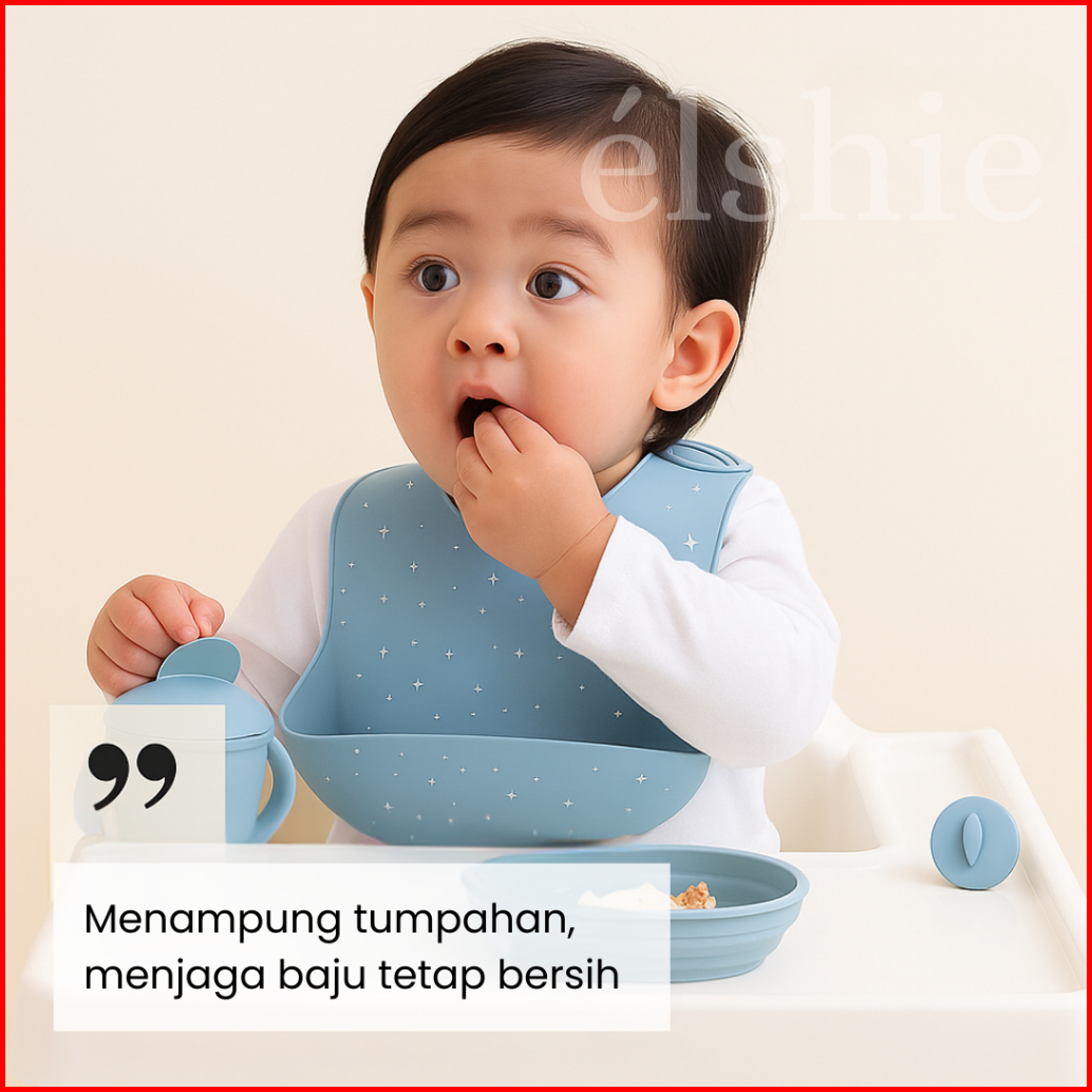 Elshie Premium Silicone Baby Bib Tadah Liur Slabber Celemek Bayi Perlengkapan Makan Mpasi