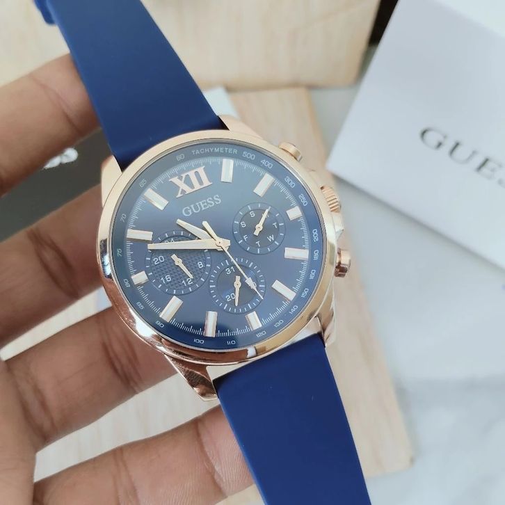 JAM TANGAN PRIA GUESS GW0913G1 ROSEGOLD BLUE RUBBER FREE ONGKIR - FREE BOX ORIGINAL