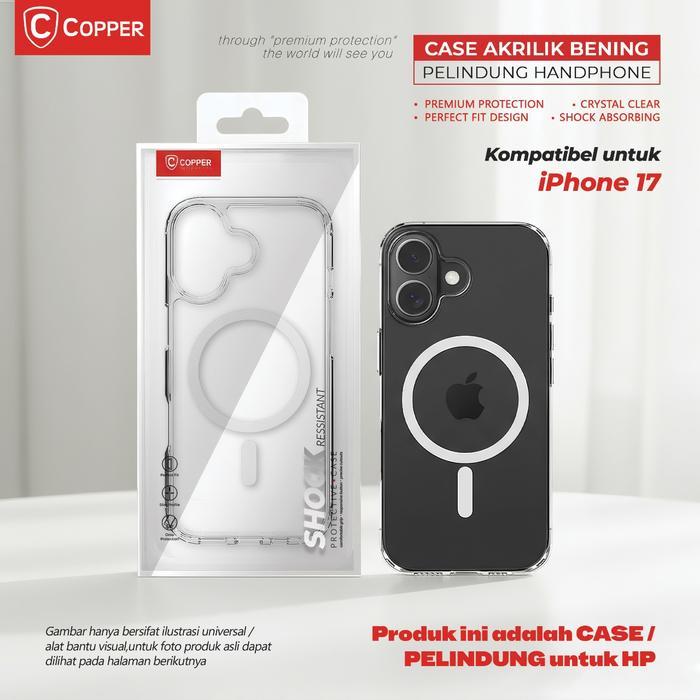 [Star] COPPER Clear Acrylic MagSafe Case Casing iPhone 17/Air/Pro/Pro Max – Transparan Shockproof Wireless Charging