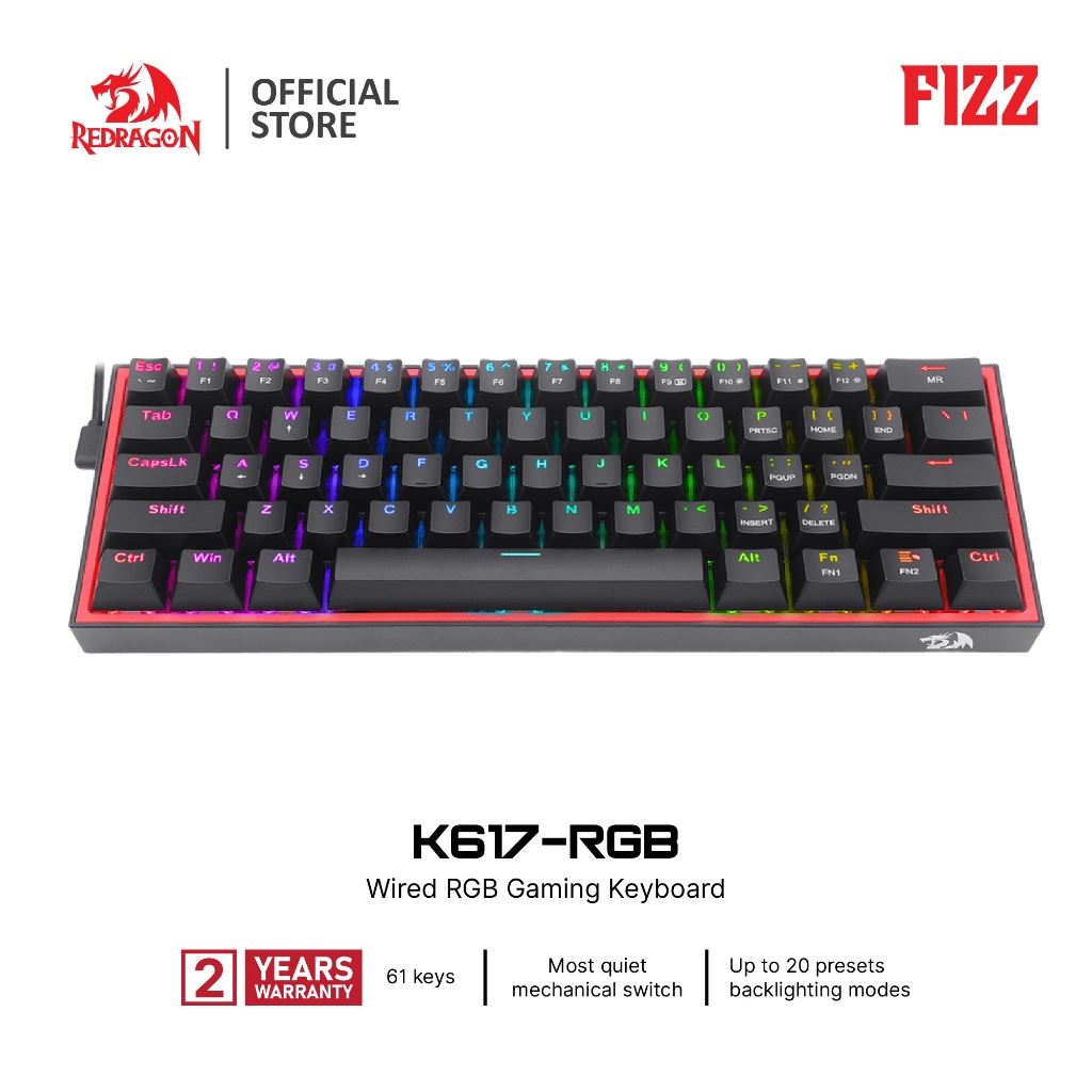 Redragon FIZZ K617 RGB Black 60% Wired mechanical keyboard 61keys RGB backlight