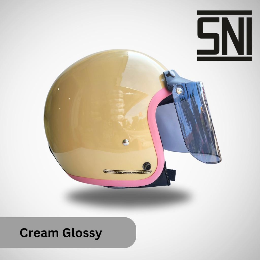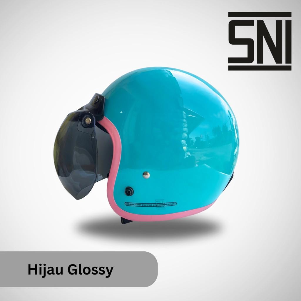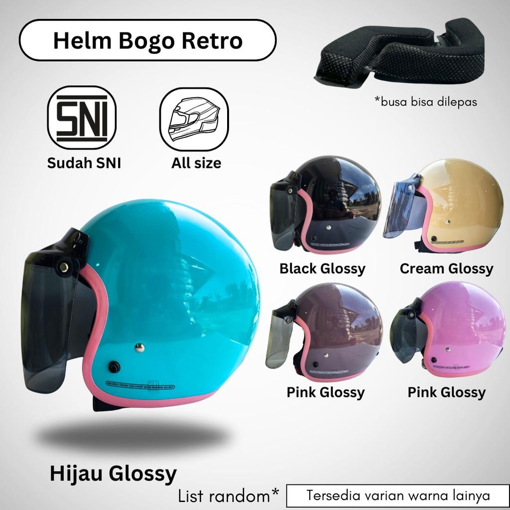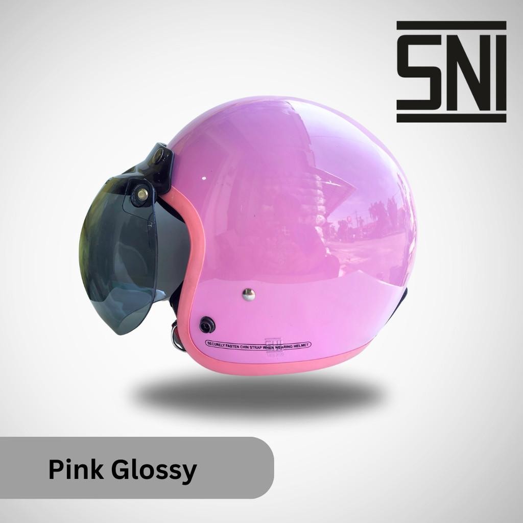 Helm Bogo Wanita Retro Hijab Helem Dewasa Bogo POLOS Full Leher HDS Helmet SNI List Pink