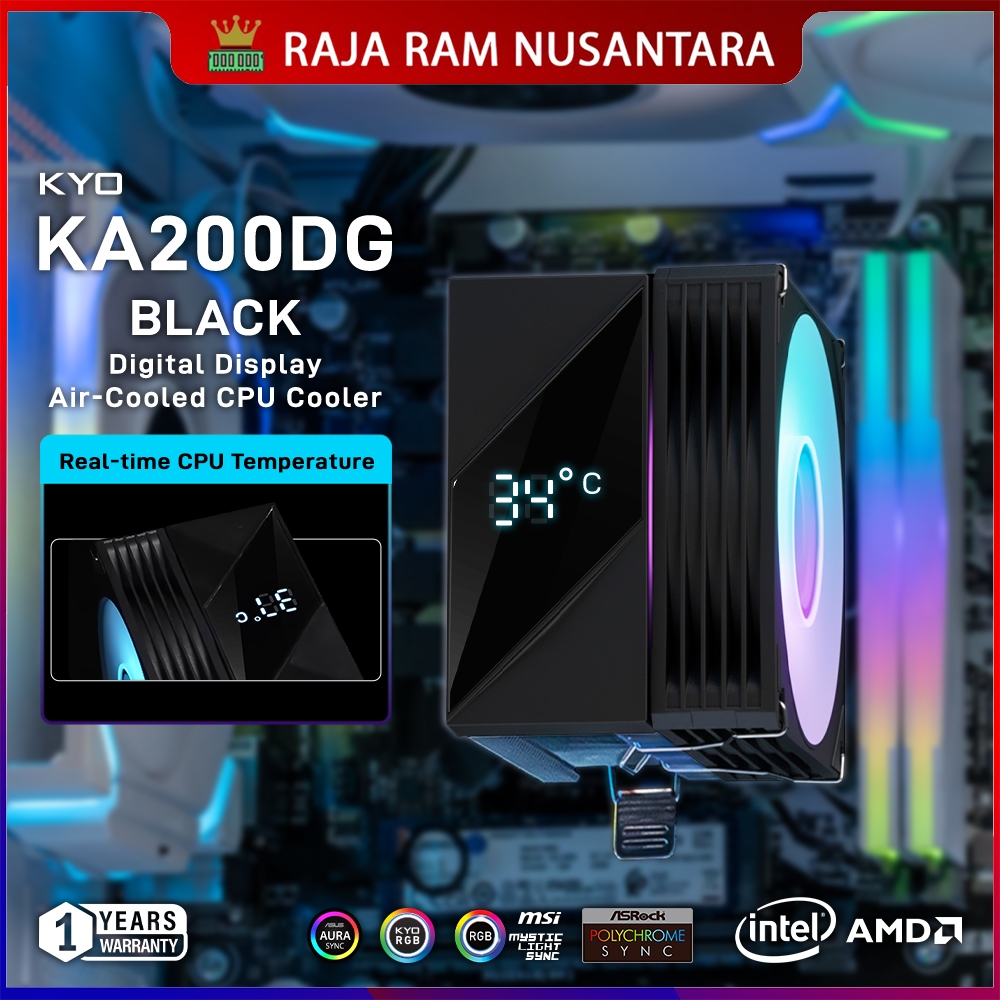 KYO KA200DG Digital CPU Air Cooler 90mm BLACK Two Heatpipe Single tower With Smart DIGITAL Display