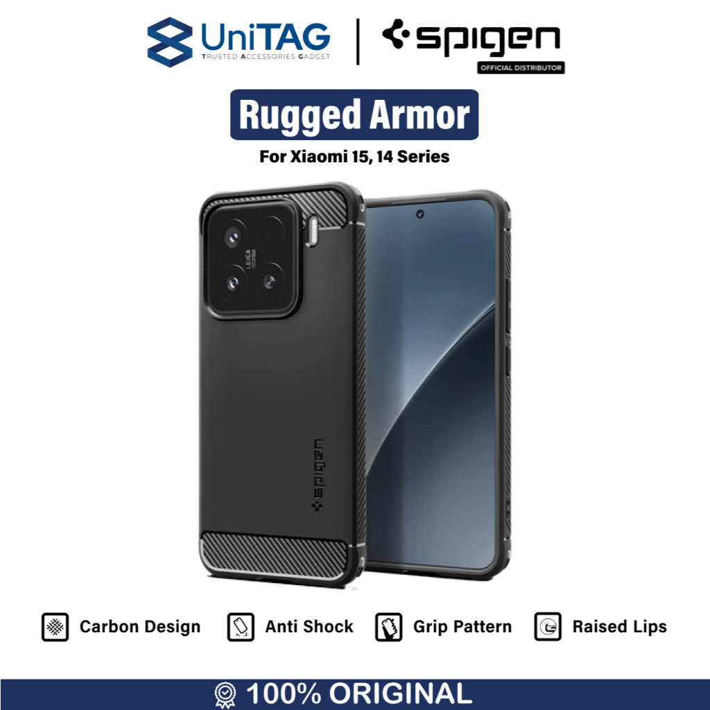 [Star] SPIGEN Rugged Armor Case Xiaomi 14/14T/15/15T Pro by UniTAG – Matte Carbon Fiber, Slim, Anti-Crack & Shockproof