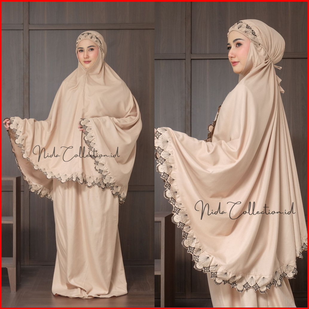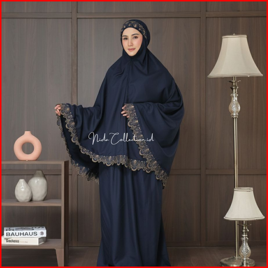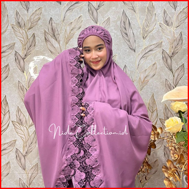 Mukena Dewasa Jumbo Full Bordir Khadijah Bloom Bahan Katun Premium Adem By Nida Collection