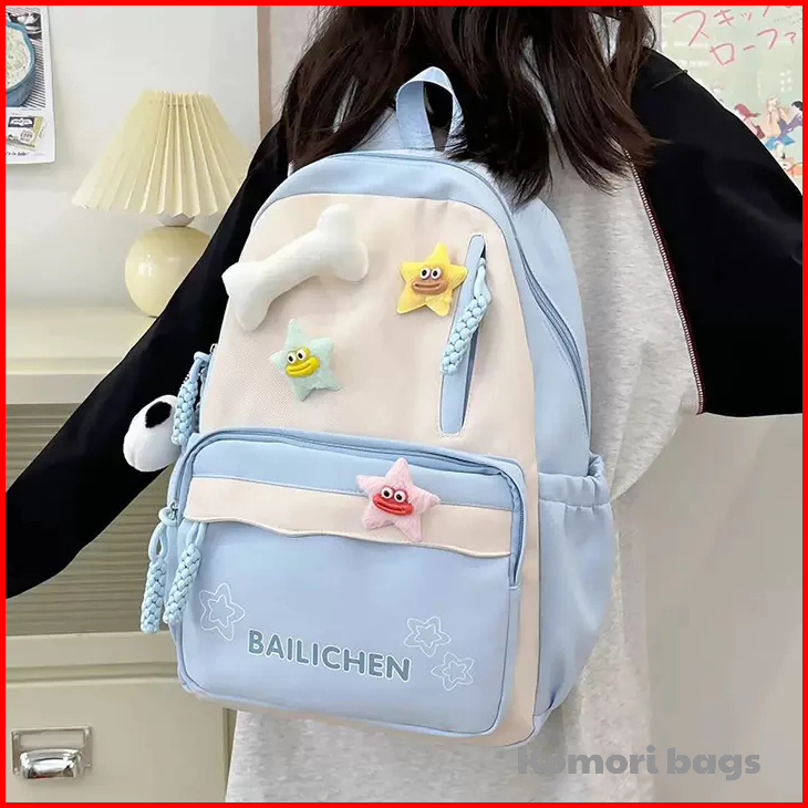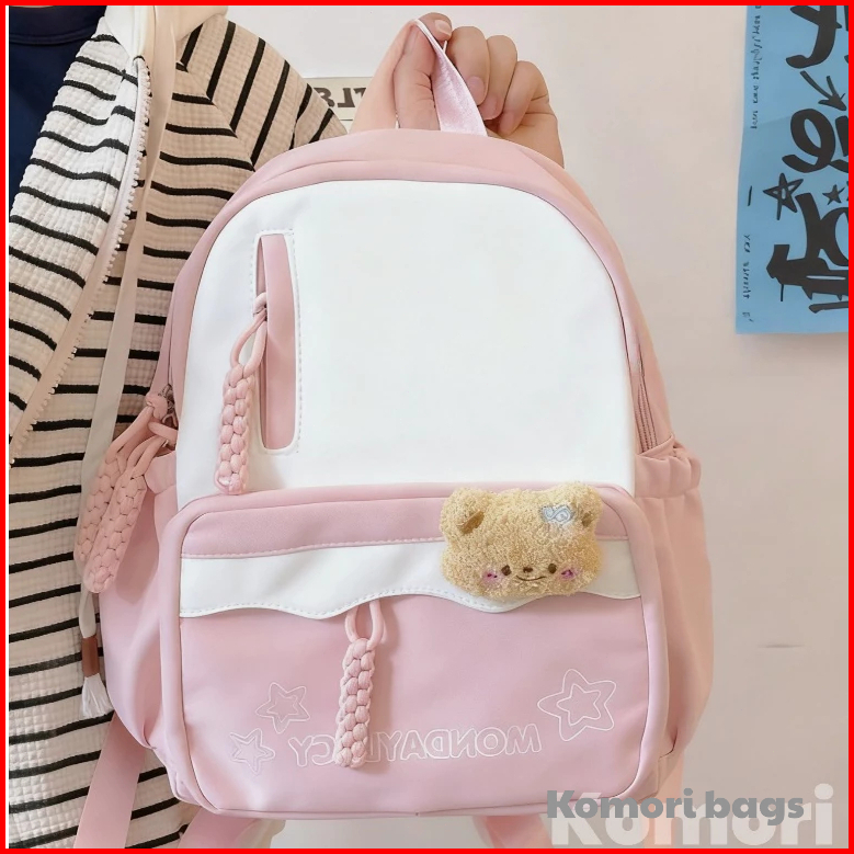 Gratis Tas Sekolah Pink Pelajar Gadis Ransel Ringan Macaron Tas Bahu Korea Import Fashion Warna Tabrakan Backpack Tas Se