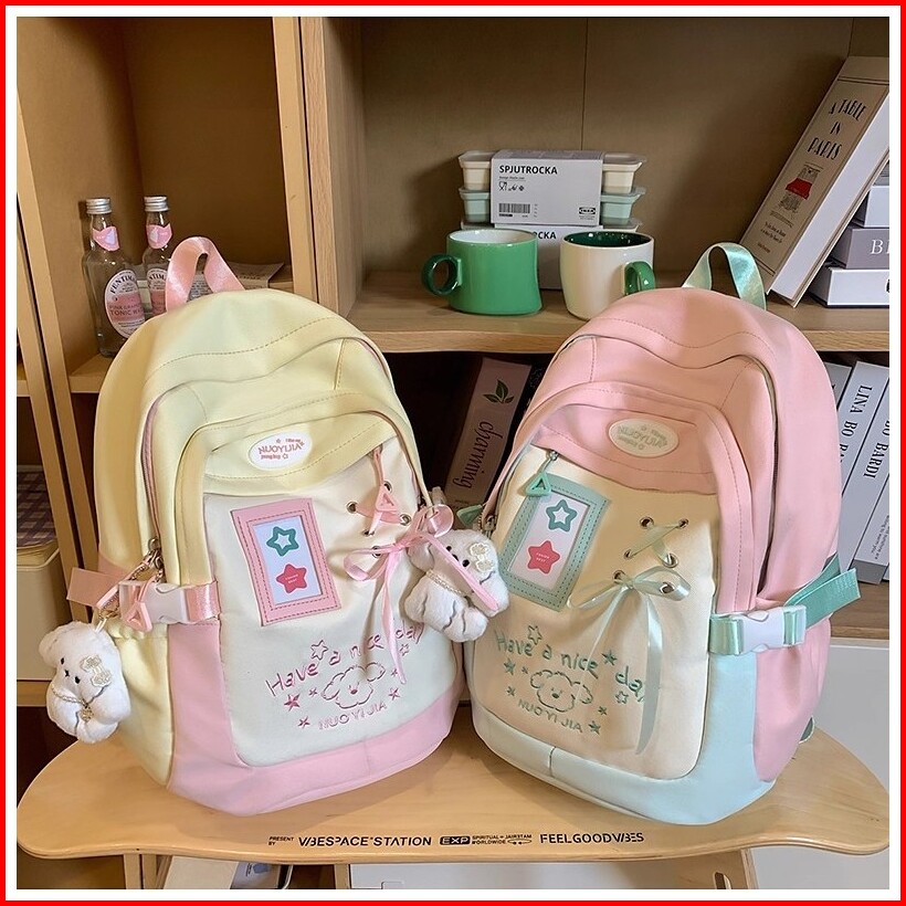 Tas Sekolah Lucu Wanita Macaron Kuliah Tas Ranse Kasual Berkapasitas Besar Korea Import Fashion Backpack Kuliah Tas Kanv