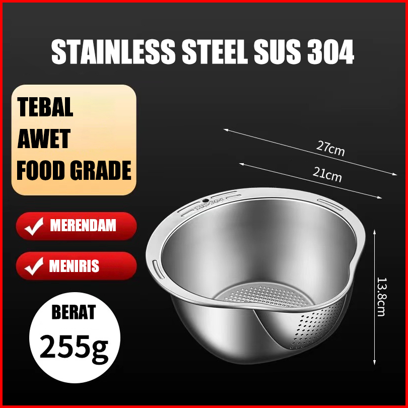 Ollahom Baskom Saringan Beras Buah Dan Sayuran Stainless Steel Sus304 Tahan Karat