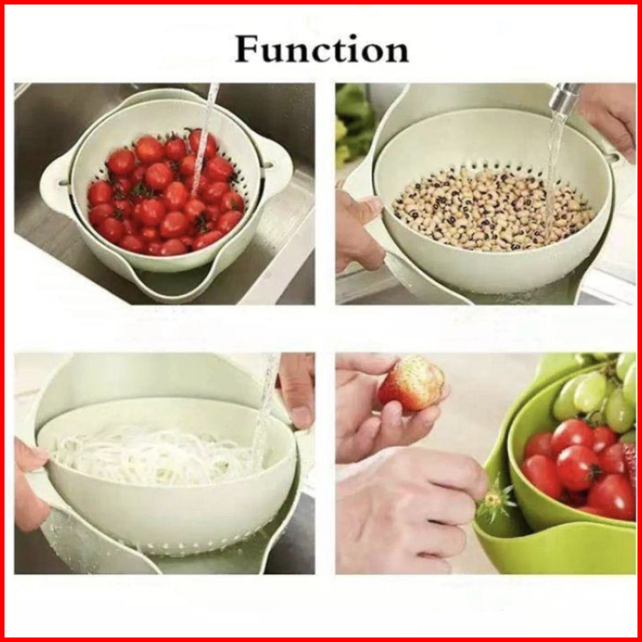 Baskom Saringan Ganda Putar 2 In 1 Baskom Putar Cuci Beras Sayur Dan Buah