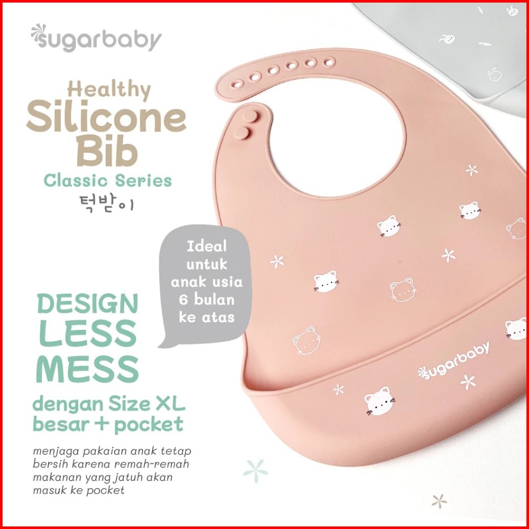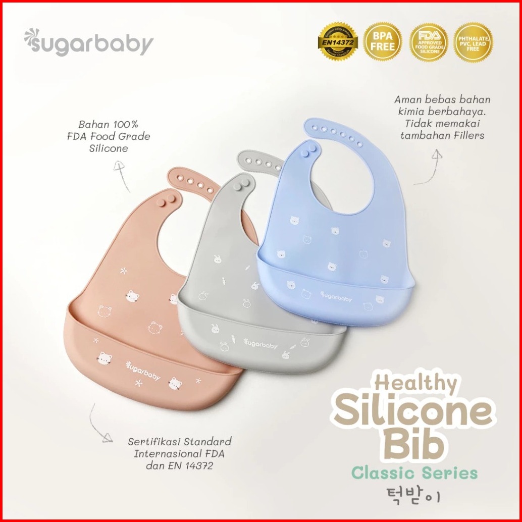 Sugar Baby Premium Silicon Bib K-series Blue Celemek Makan Bayi
