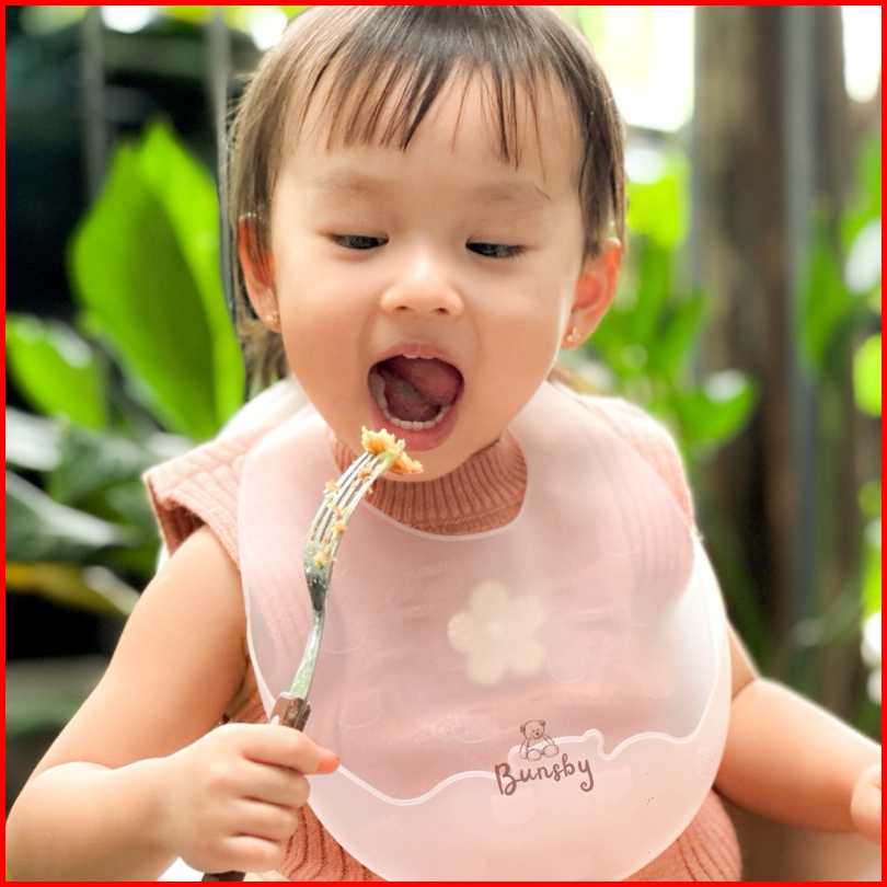 Bunsby - Baby Silicone Bibs Celemek Bayi Silikon Super Ringan Transparan With Case Bpa Free