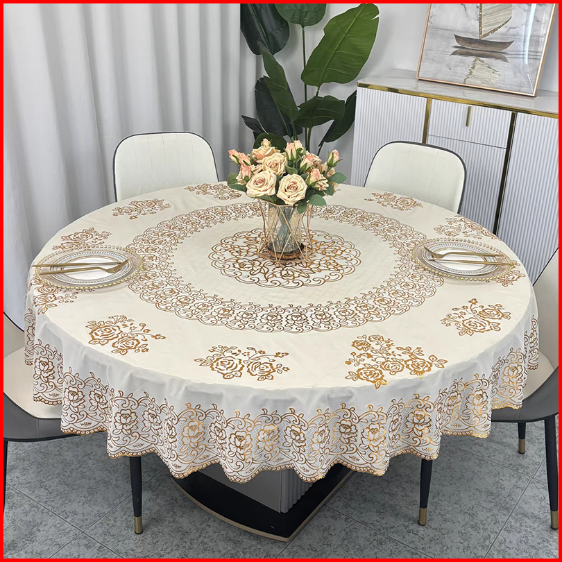 Taplak Meja Makan Motif Bunga Anti Air Anti Slip Ukuran Bundar Diameter 120cm 150cm 180cm Persegi 4-8 Kursi Bahan Pvc Te