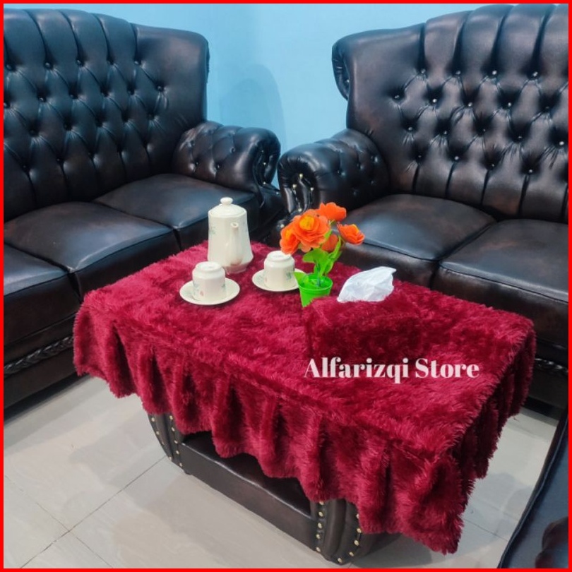 Taplak Meja Rumbai Bulu Rasfur Sarung Tisu Bulu Rasfur Taplak Meja Bulu Ruang Tamu Premium
