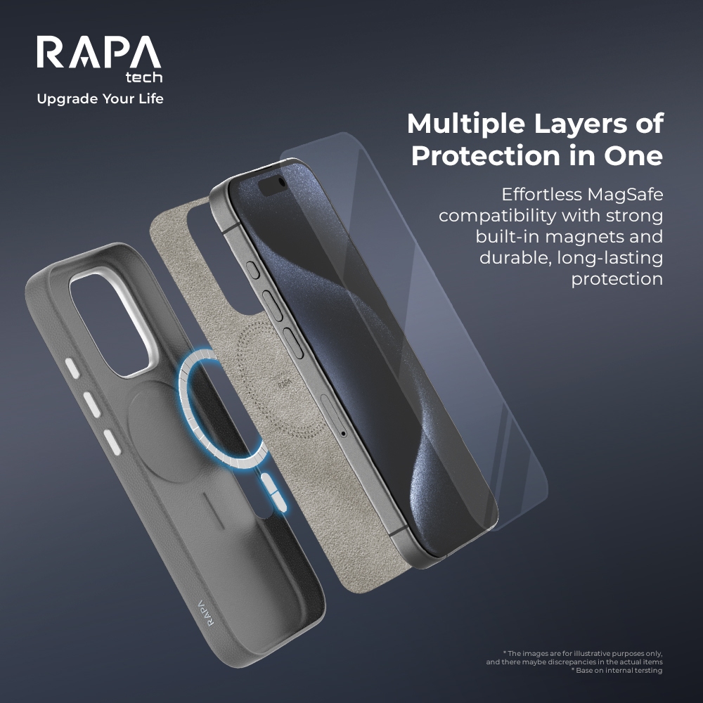 [Star] RAPAtech Hybrid MagSafe Clear & Leather Case Casing iPhone 12/13/14/15/16 – Crystal 2in1 + Premium Tempered Glass