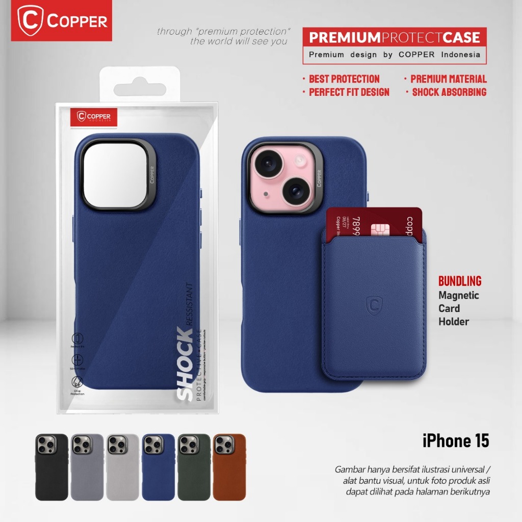 [Star] COPPER Slim Case Casing iPhone 15 + Magnetic Card Wallet – Tipis Ringan MagSafe Dompet Kartu Premium