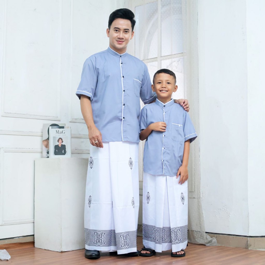 Setelan Sarung dan Baju Muslim Koko Pendek Couple Ayah dan Anak Terbaru Motif Wajek