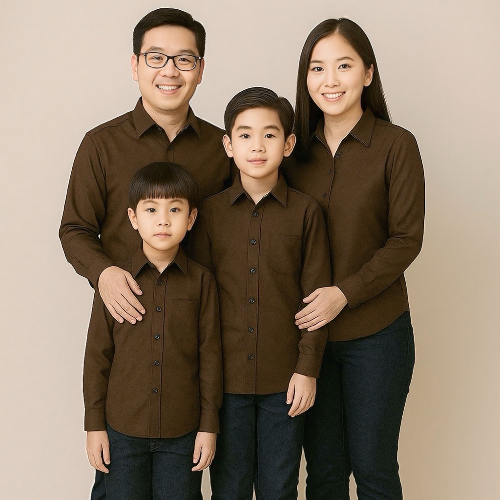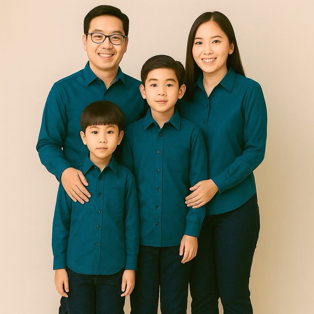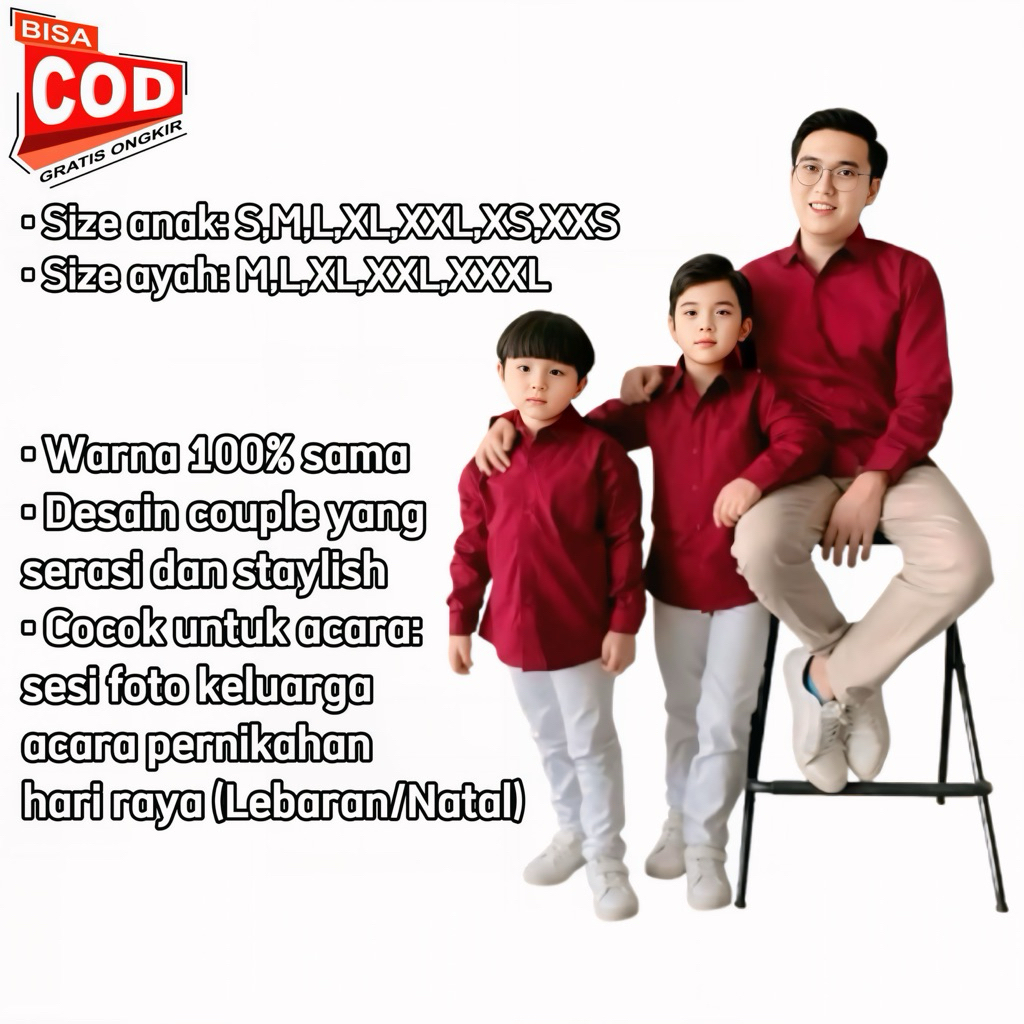 EMERALD GREEN Kemeja Couple Ayah Dan Anak Laki Laki Lengan Panjang Formal Kemeja Anak Laki-laki Terbaru Atasan Baju Couple Ayah Dan Anak Laki Laki Usia 1-10 Tahun Kemeja Katun Couple Pasangan Keluarga