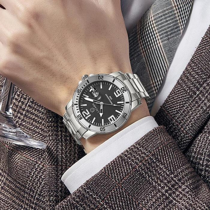 LICARR Jam Tangan Pria Fashion Kuarsa Stainless Steel Business Anti Air Santai Tanggal Jam Tangan Cowok