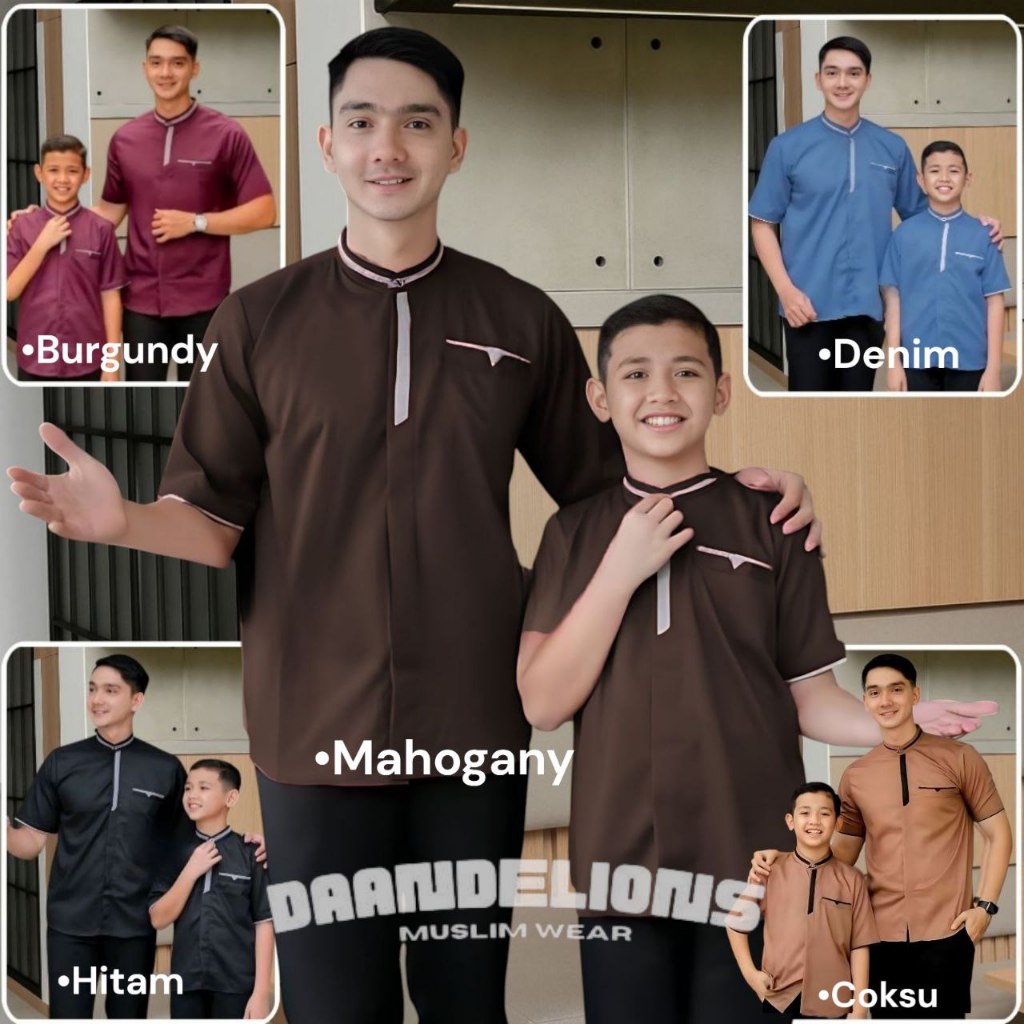 Baju Koko Couple Ayah & Anak Lengan Pendek Bahan KatunTerbaru Koko Anak Dewasa Bima Warna Mahogany